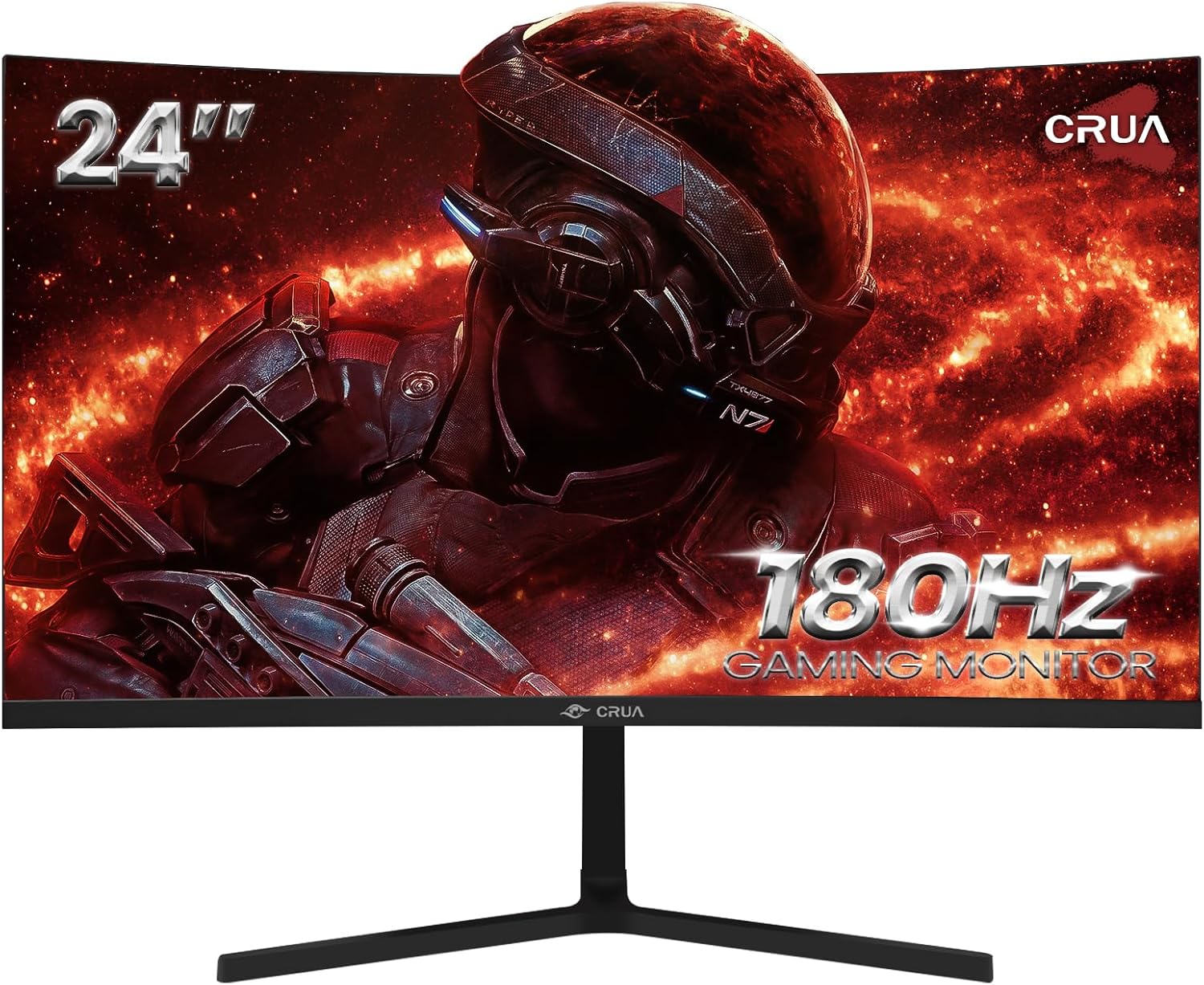 CRUA 24 Inch 180Hz/144Hz Curved Gaming Monitor, FHD 1080P Frameless Computer Monitor, Support AMD freesync Low Motion Blur, Eye Care, DisplayPort, HDMI, Black