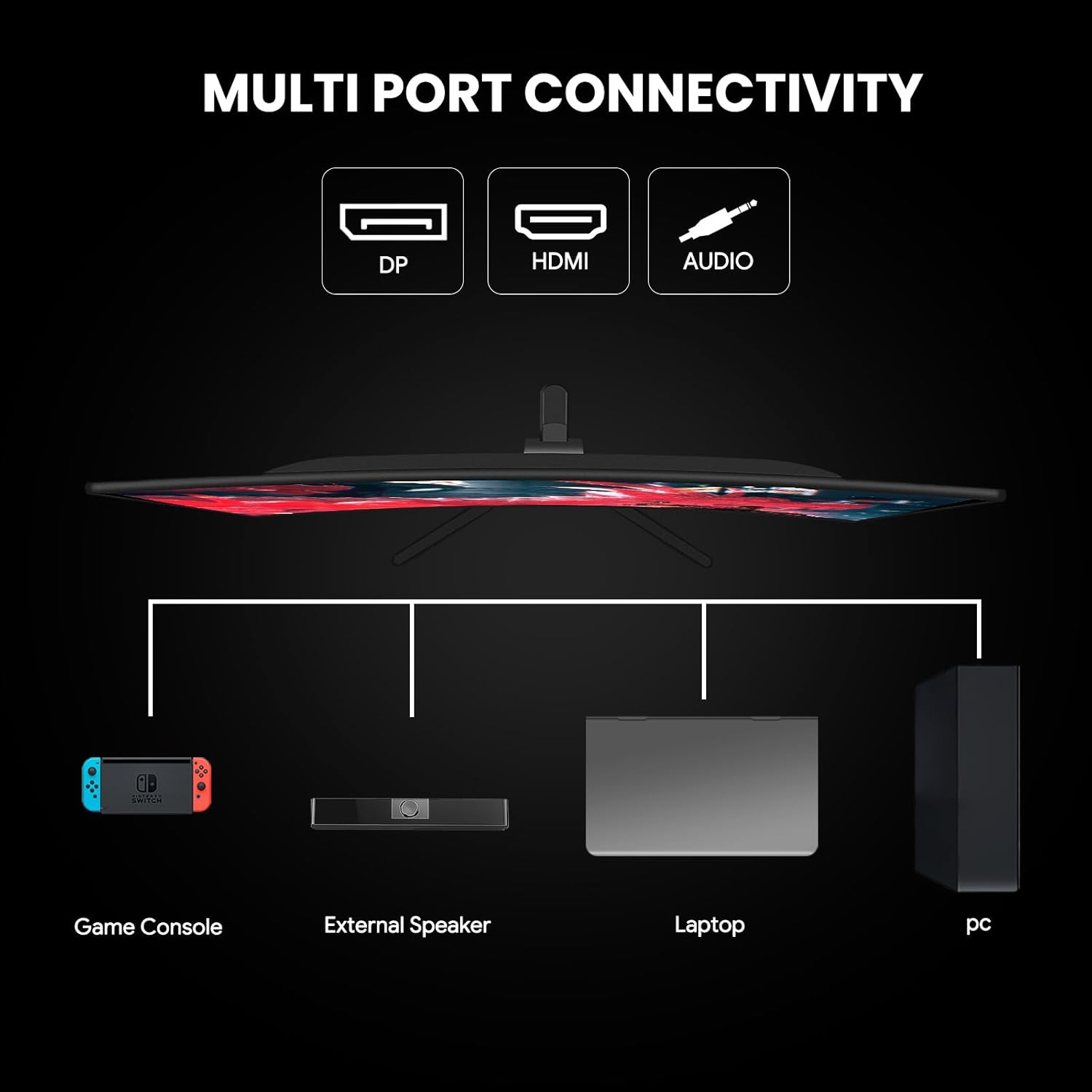 【Sleek and Versatile Design】: The pc monitor features a sleek and slim body with a thickness of less than 1 cm, offering a modern and stylish look. The narrow bezels on three sides of the screen allow for seamless multi-monitor setups. It is equipped with DP1.2, HDMI1.4, and a 3.5mm audio port, providing easy connectivity to a wide range of devices such as laptops, desktops, Xbox, PS4/5, and Switch. Whether you're working, studying, or playing, you can effortlessly switch between them.