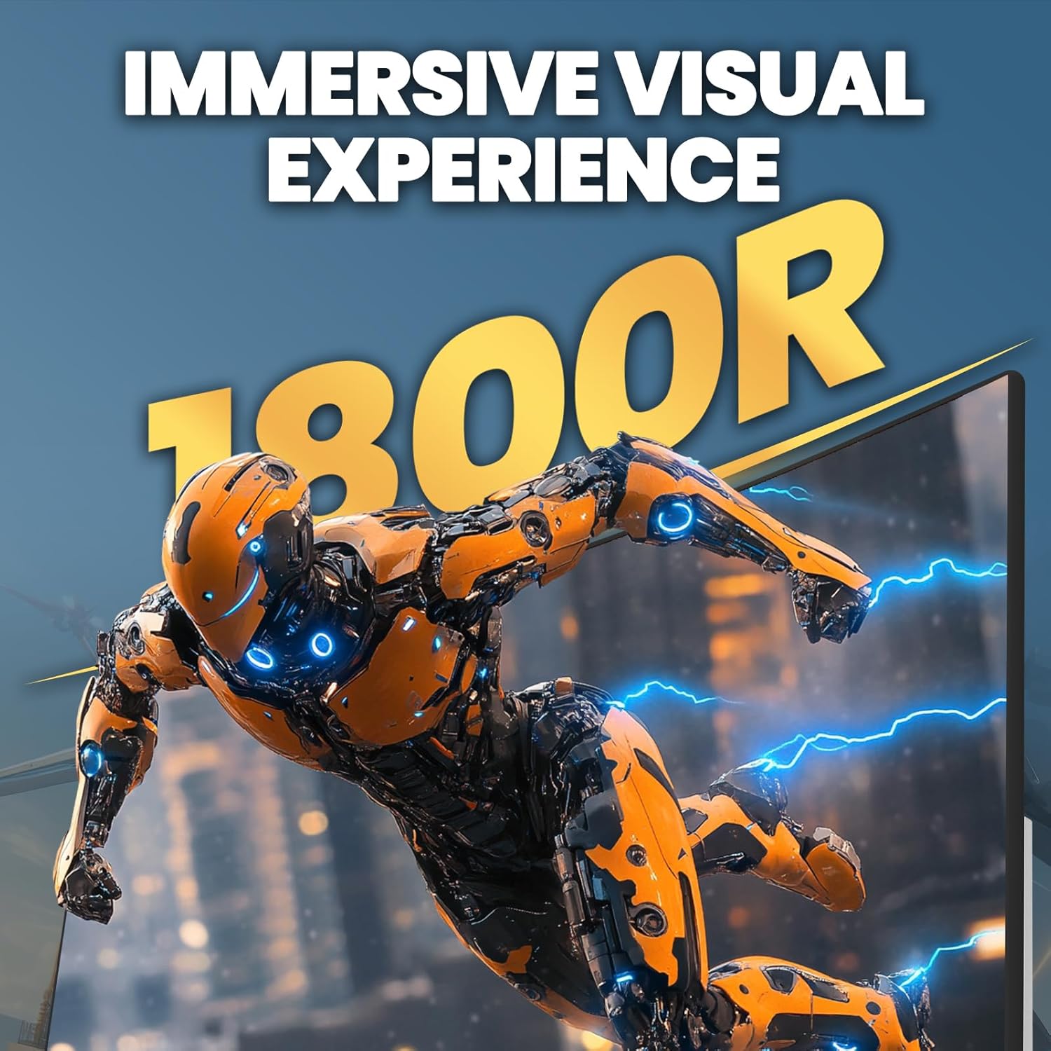 • 1800R Curved Monitor: The 1800R curved screen and 178° wide viewing angle create an immersive experience, reducing unnecessary neck movement for natural posture and efficient multitasking. Its low blue light mode minimizes eye strain during prolonged use, and the white chassis blends elegantly with your workspace