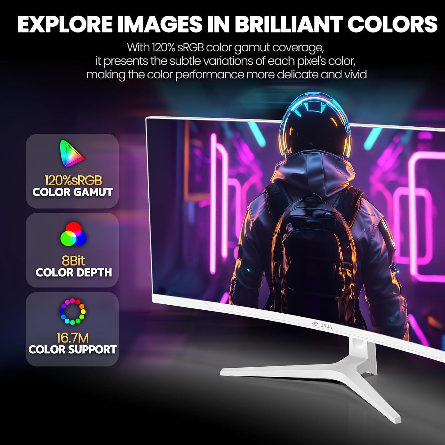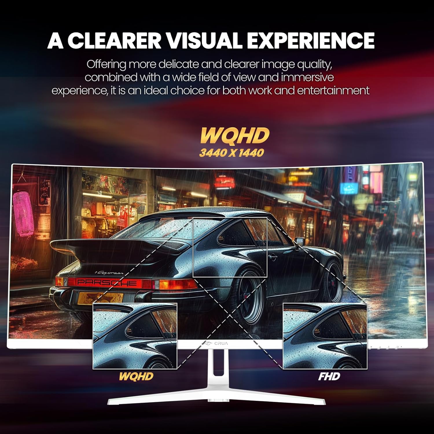 - [White Ultra-Wide Monitor] The CRUA 34-inch white curved monitor features a 21:9 aspect ratio and 1500R curvature, offering an expanded field of view and ample space for multitasking or creating diverse media content. Its sleek white design brightens your workspace, enhancing productivity and efficiency.PIP and PBP split screen function allows you to connect and display two devices at the same time.
