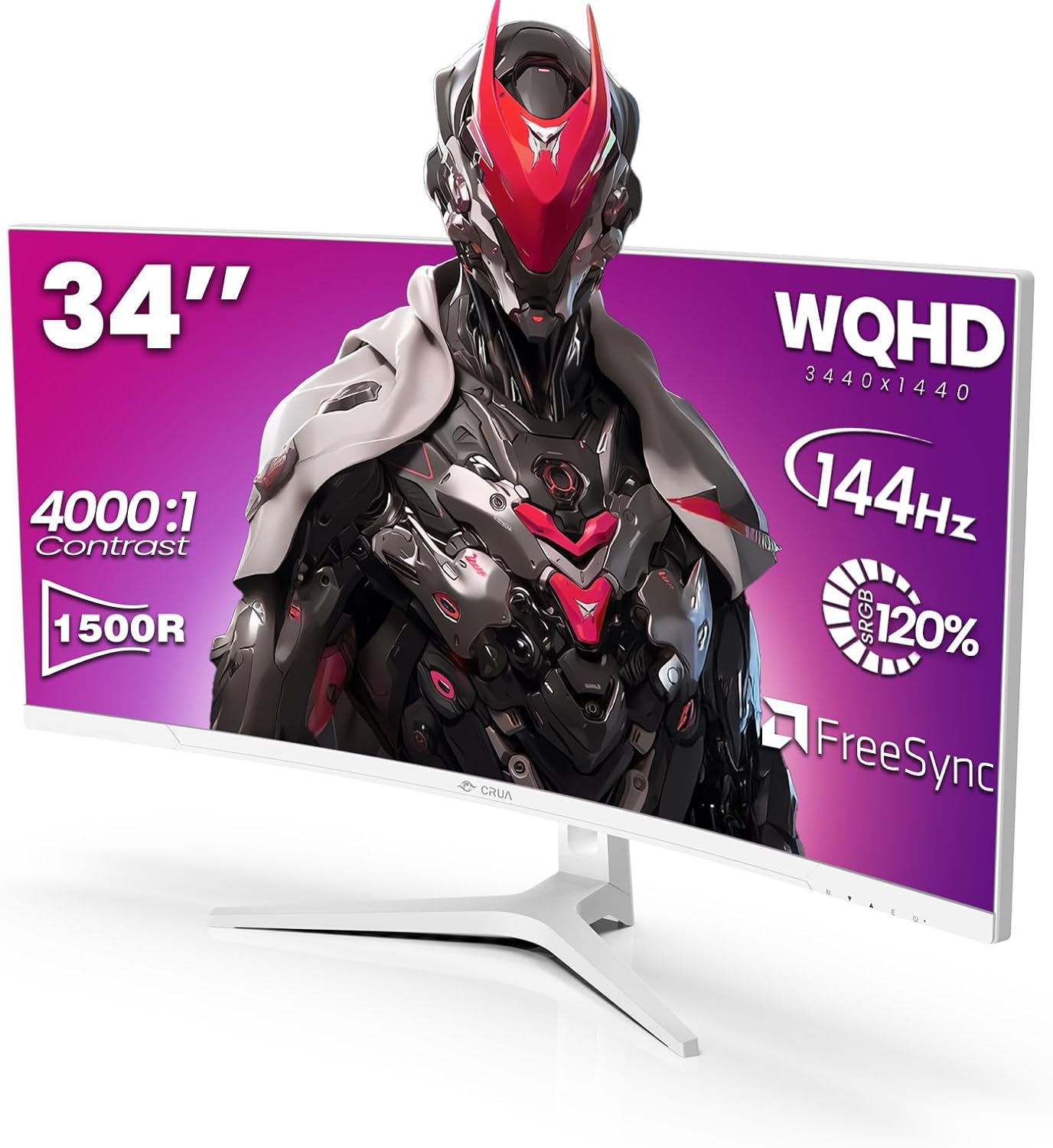 CRUA 34 Inch Curved Gaming Monitor 144HZ, White 21:9 Ultra Wide PC Monitor 1500R WQHD 3440X1440P 120% sRGB Computer Display/VA Panel/PIP& PBP/HDMI2.0 & DP1.4/Tilt Adjustment/Wall Mountable