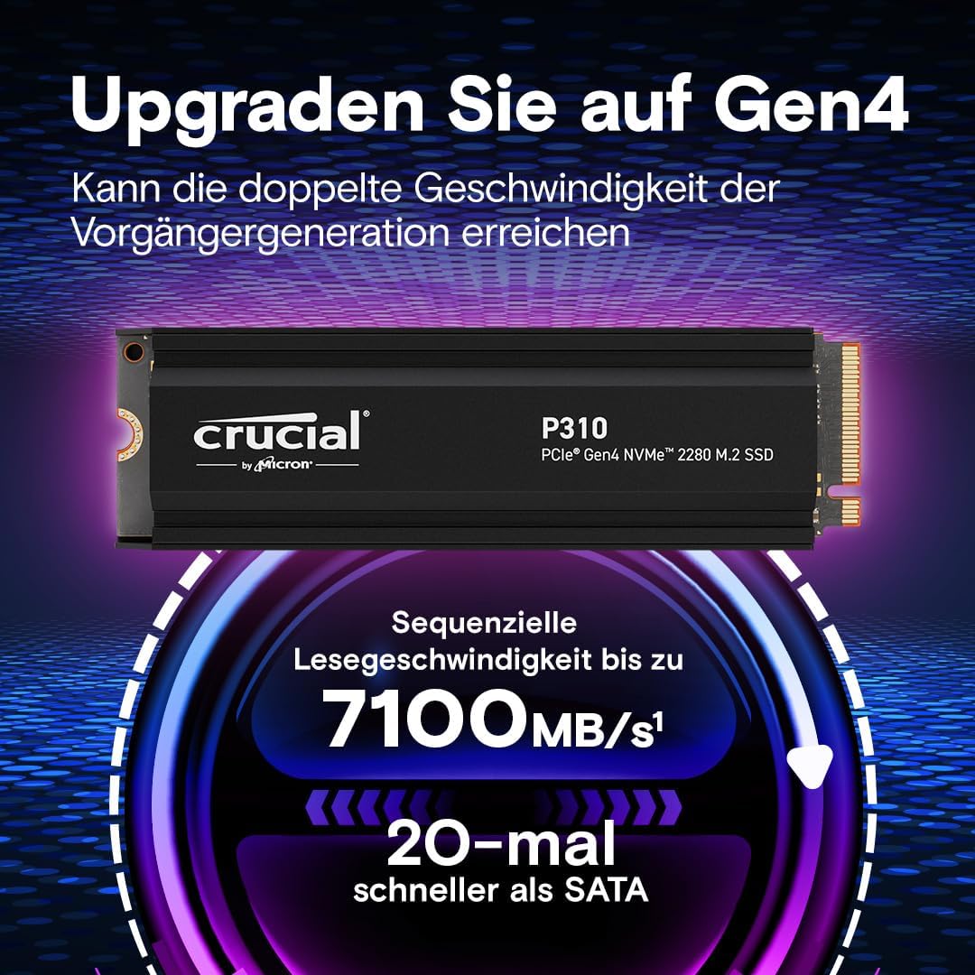 Crucial P310 4TB PCIe Gen4 2280 NVMe M.2 SSD Up to 7,100MB/s – with Acronis Offer, Internal Solid State Drive (PC) – CT4000P310SSD801