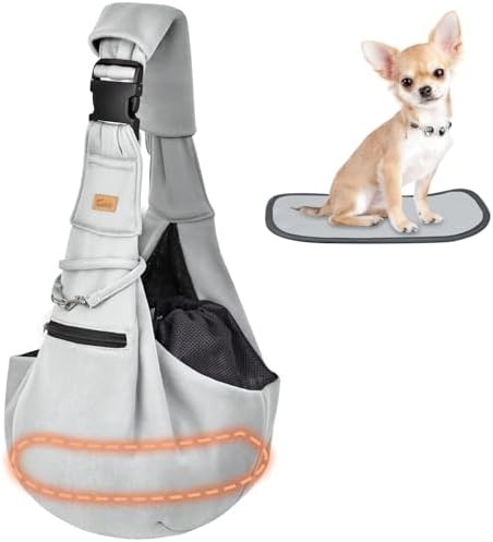 Cuby Adjustable Dog Cat Sling Padded Hard Bottom Pet Carrier Sling Soft Carrying Puppy Bag for Small Dogs Cats Outdoor Travel (Grayish-White)PL17-B0BRN5VB5Q