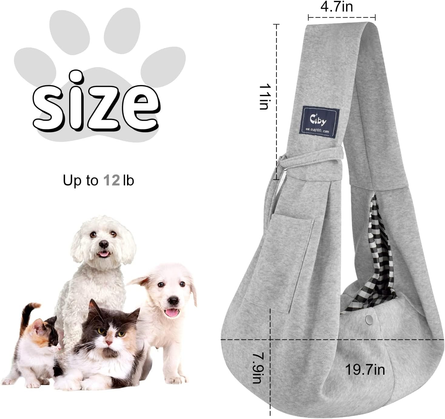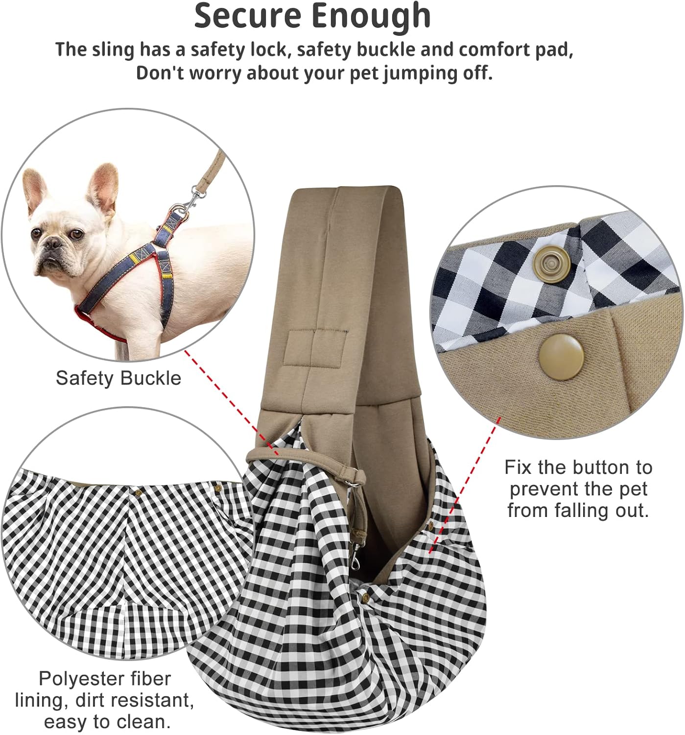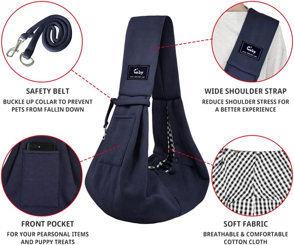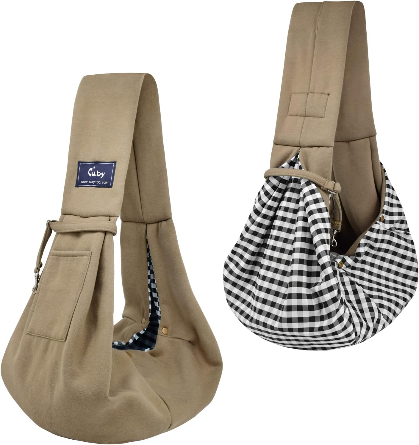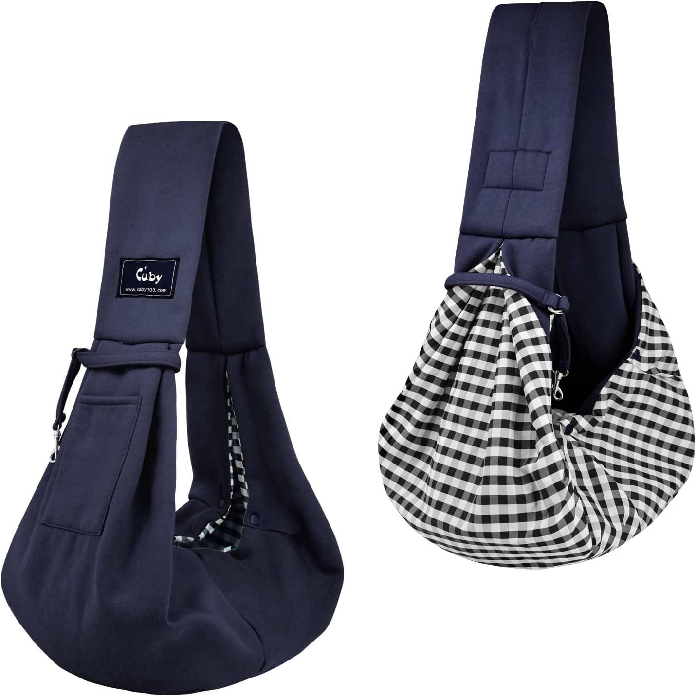 • 🐾Reversible Use & Padded - CUBY adjustable dog slings for small dogs are made of Double layer fabric, can be used on both sides, the outer layer is a solid color cotton fabric, and the inner layer is a plaid fabric, which is soft, skin-friendly and breathable, and will not make your pet feel uncomfortable. And Upgrade padded shoulder strap makes your shoulders less tired, free your hands, and take your pet out with ease.