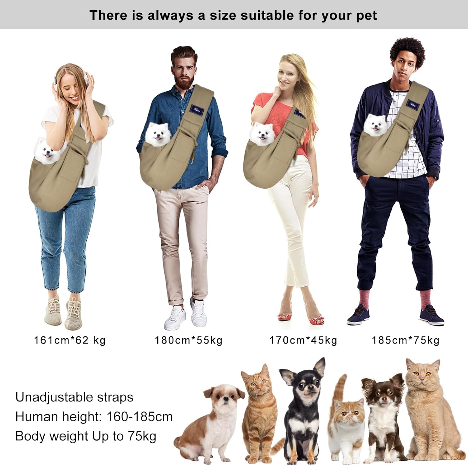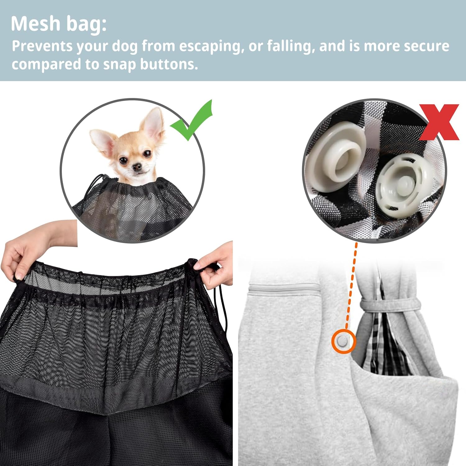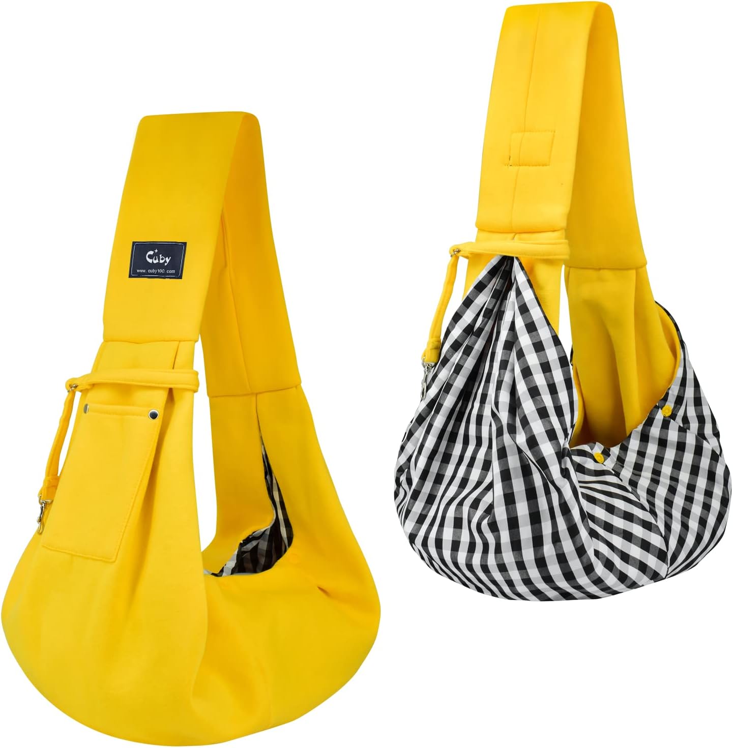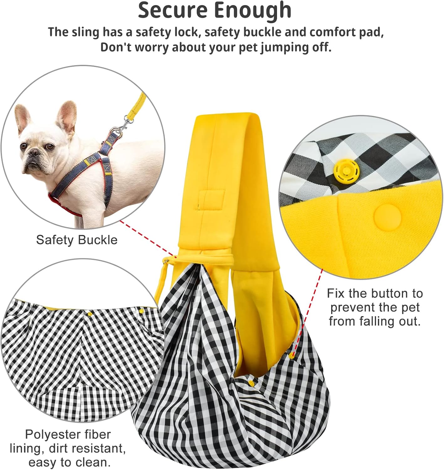 • 🐾Reversible Use & Padded - CUBY adjustable dog slings for small dogs are made of Double layer fabric, can be used on both sides, the outer layer is a solid color cotton fabric, and the inner layer is a plaid fabric, which is soft, skin-friendly and breathable, and will not make your pet feel uncomfortable. And Upgrade padded shoulder strap makes your shoulders less tired, free your hands, and take your pet out with ease.