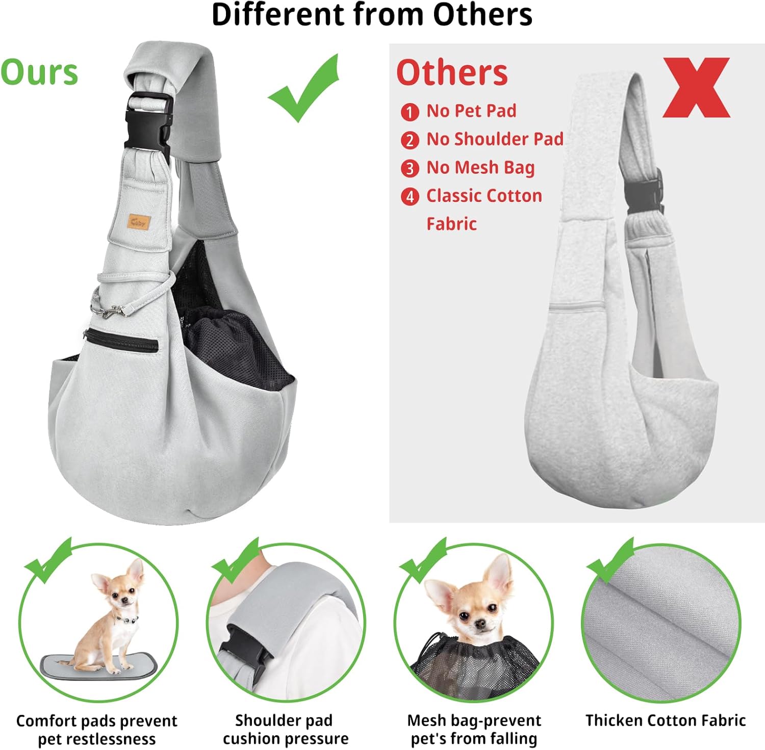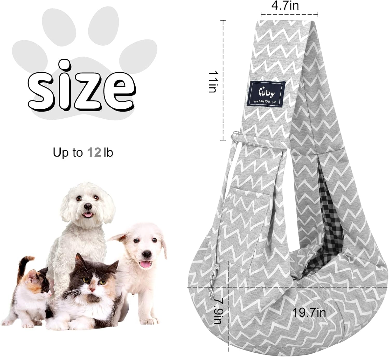 Cuby Adjustable Dog Cat Sling Padded Hard Bottom Pet Carrier Sling Soft Carrying Puppy Bag for Small Dogs Cats Outdoor Travel (Grayish-White)
