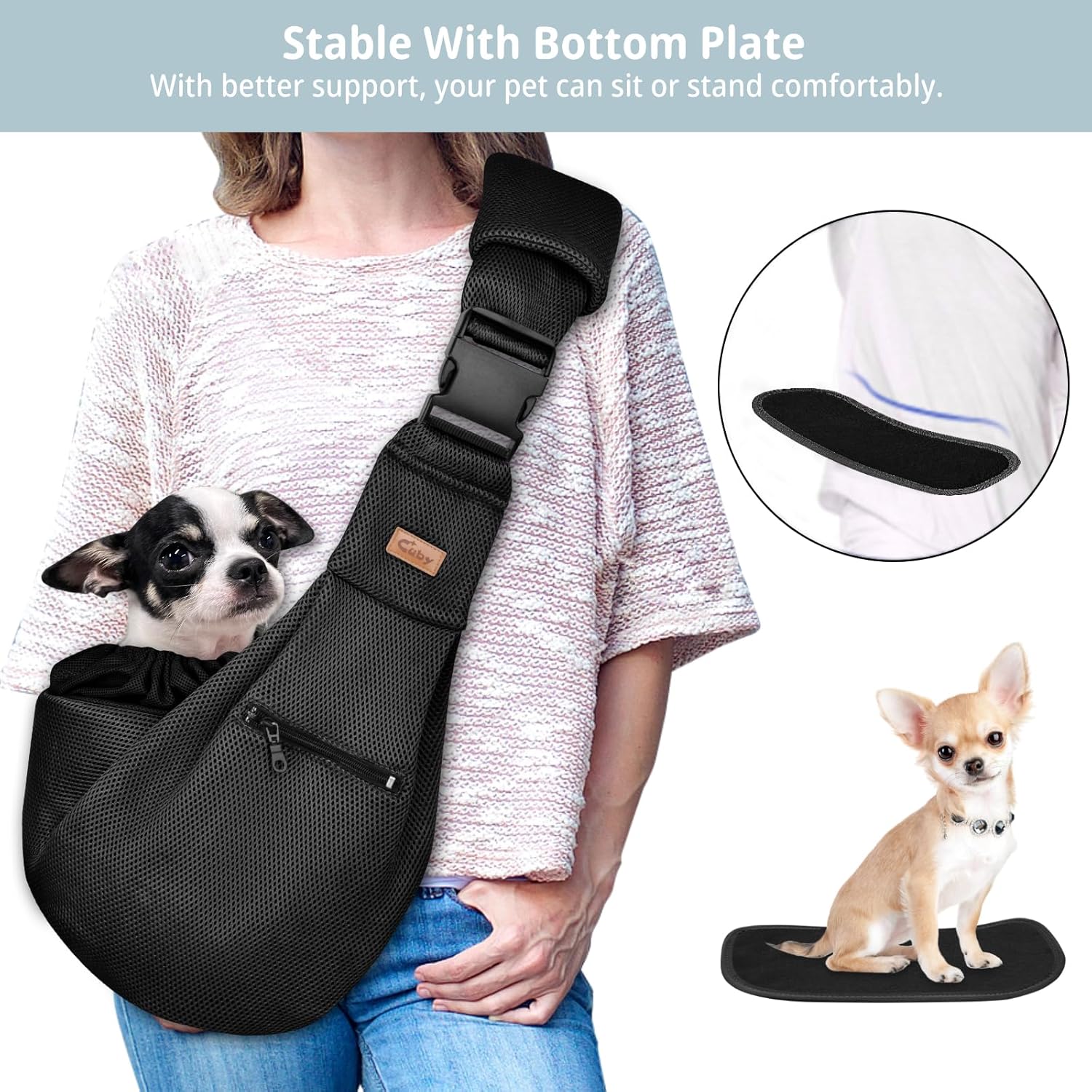 • 🐾Adjustable & Hands Free - The shoulder strap's length of small pet sling with hard bottom can be adjusted according to yours height and figure, the maximum length is 40cm, suitable for most people. The buckle design on the shoulder strap is very easy to put on and take off. This wide shoulder straps dog travel bag with a Zipper Pocket on the shoulder straps can also hold your personal items or treats for your pooch.