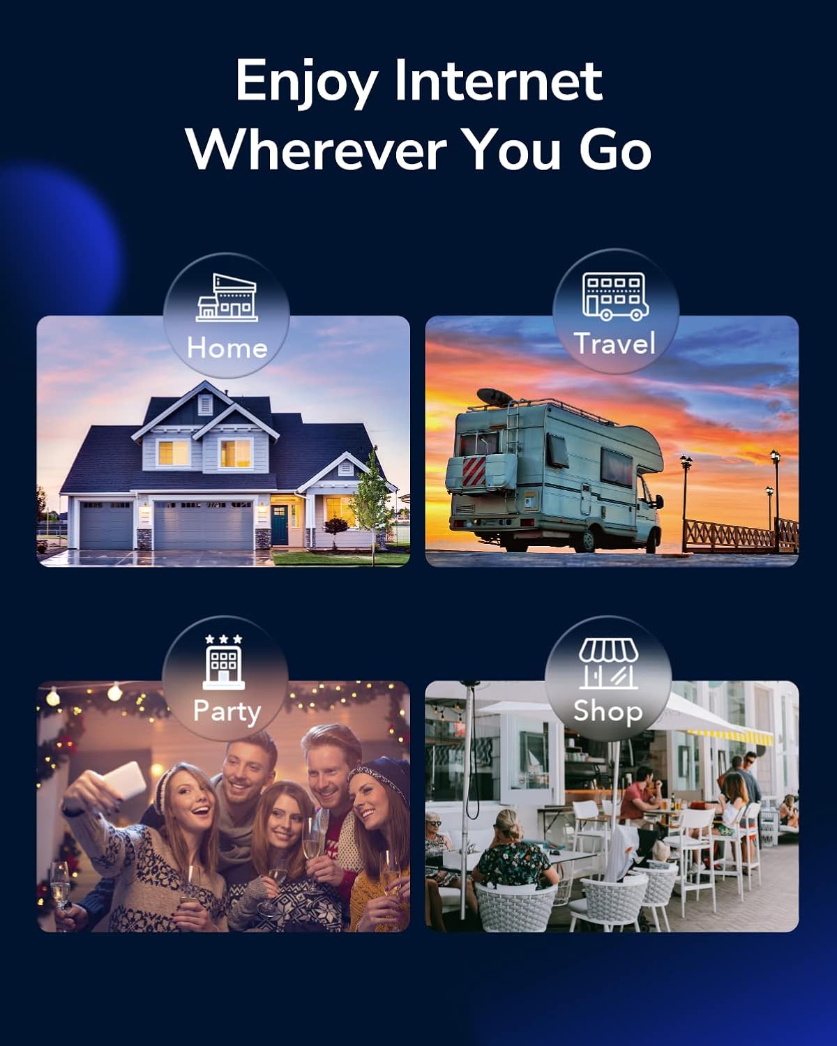 - Simply insert a SIM card and get all your Wi-Fi devices connected to the internet, very convenient for places where cable internet is unavailable, such as your holiday cabins or remote cameras.