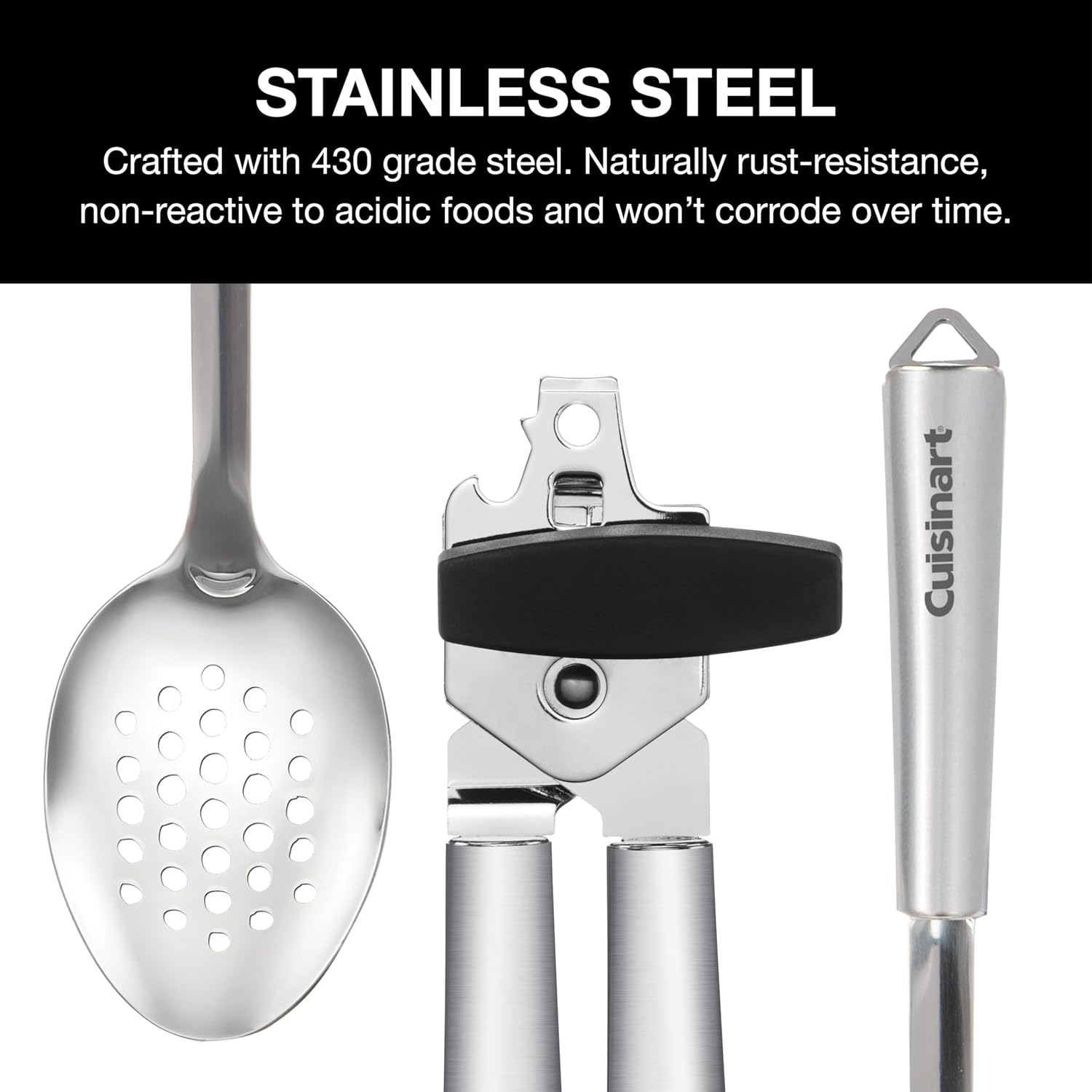 - Durable stainless steel - crafted from stainless steel grade 430. The stainless steel material provides natural rust-resistance, ensuring these utensils won't corrode over time