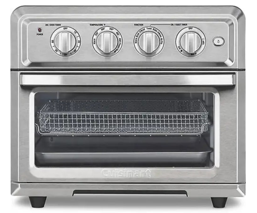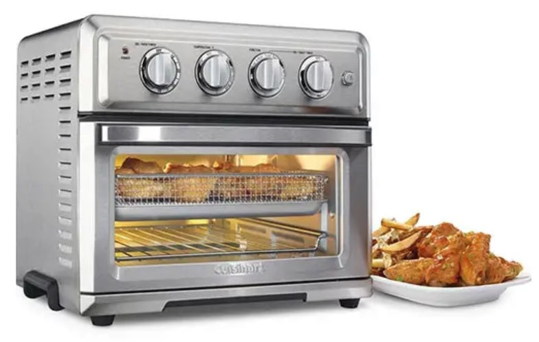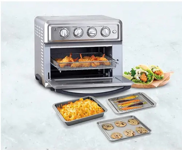 Introducing a healthier way to fry, and so much more! The Cuisinart AirFryer Toaster Oven is a premium full-size toaster oven with a built-in air fryer. That means it not only bakes, broils, and toasts, it also lets you air-fry right inside the oven. Best of all, a large, 4-pound chicken requires only about a teaspoon of oil to fry! Air frying, which uses powerful ultra-hot air, is a healthier way to prepare delicious fried favourites, from wings to fritters to fries to shrimp. And since toaster ovens stay on the countertop, this fryer doesn’t have to move back and forth, from cupboard to counter. Enjoy the crunch without the calories and messy cleanup, with the AirFryer Toaster Oven from Cuisinart!