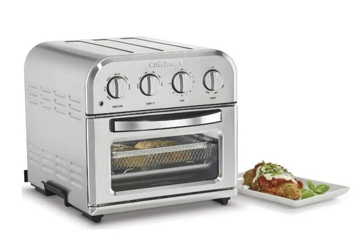 The Cuisinart Air Fryer Toaster Oven is now available in a new, space-saving design! Cuisinart’s Compact Air Fryer Toaster Oven is big enough to Air Fry up to 2.5 lb. of food, toast 4 slices of bread or bagel halves, and bake up to a 3 lb. chicken. With all the features of our full-size models, including 6 functions and temperatures up to 450°F, this is an oven that offers multiple menu options and great performance without crowding the countertop!