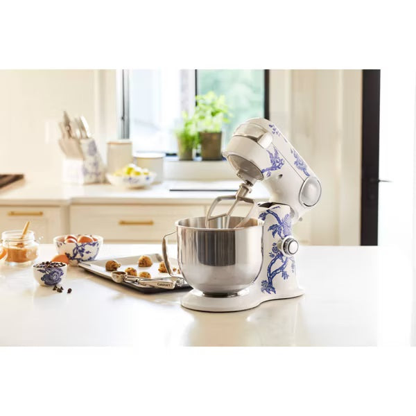 Welcome to a unique blend of classic and contemporary designed to delight and inspire today’s home chefs, from two names associated with great food and good times: Cuisinart and Caskata. We’ve partnered to create stylishly distinctive kitchen products that enhance the joy of preparing, serving, and savoring food with family and friends. Carefully crafted from the highest quality materials, each product is as beautiful as it is practical and is curated for those who appreciate cooking and entertaining as expressions of love. Delivering power, precision, and performance, our stand mixer features a 500-watt motor, die-cast metal construction, and 12 speeds that allow for nuance and excellence in performing a variety of preparation tasks. The unit's tilt-back head allows for easy access to its 5.5-quart mixing bowl, while the included splash guard prevents messy countertops. Also included are a chef's whisk, dough hook, and flat mixing paddle. The mixing bowl and all accessories are dishwasher safe. Additionally, you can purchase a variety of attachments for the unit: a pasta roller and cutter, pasta extruder, meat grinder, frozen dessert maker, and spiralizer.