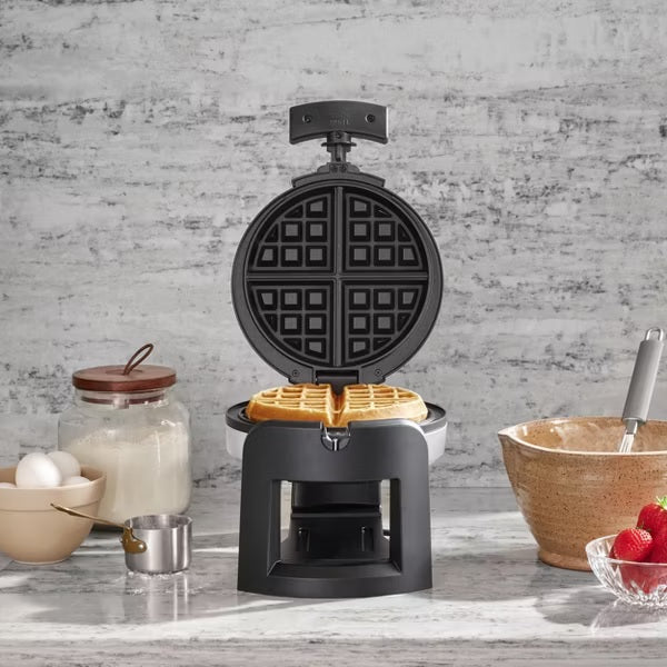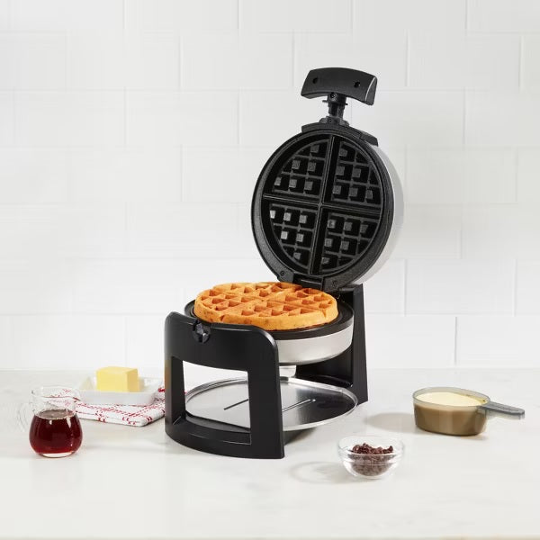 Fast, flavorful and fluffy—every Belgian waffle baked in Cuisinart’s Flip Belgian Waffle Maker is cooked to perfection in minutes. Designed with a rotary feature that flips 180° to evenly cook waffles inside and out, this kitchen essential bakes according to preference with a turn of the dial, from light to dark. Nonstick plates easily release a flawlessly formed Belgian waffle with deep pockets perfect for filling with fruit, meat, jams, whipped cream, and other toppings. A ready indicator light advises when the waffle is ready and prevents over- and under-cooking. Durable, brushed stainless steel housing complements any kitchen, and wipes clean in seconds.
