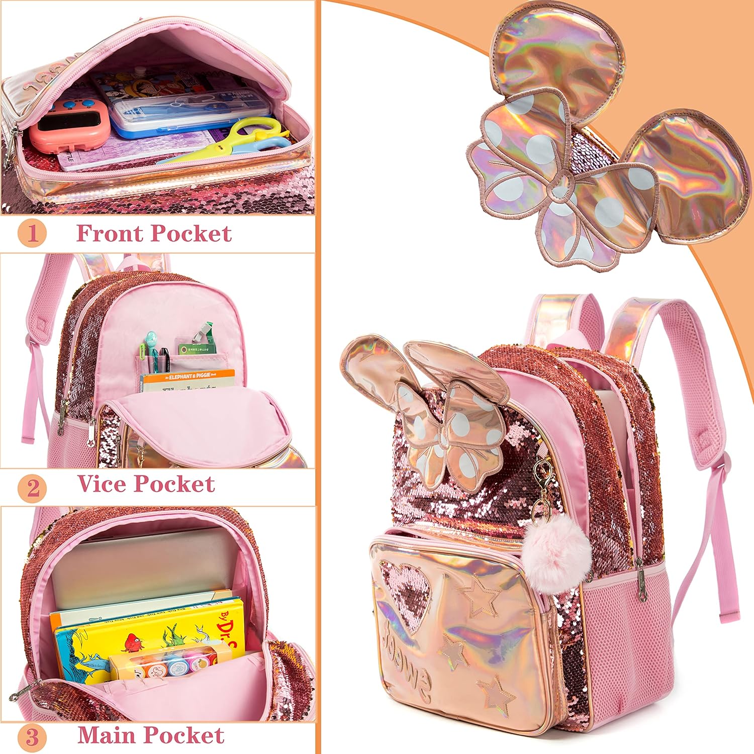 - [Girls Backpacks Wide Application]The lovely 4 in 1 school backpack is ideal for various occasions like school, travel, hiking and camping ,tourism.This cute elementary student bookbag is the best choice for back to school, Christmas, New Year, Birthday gifts.