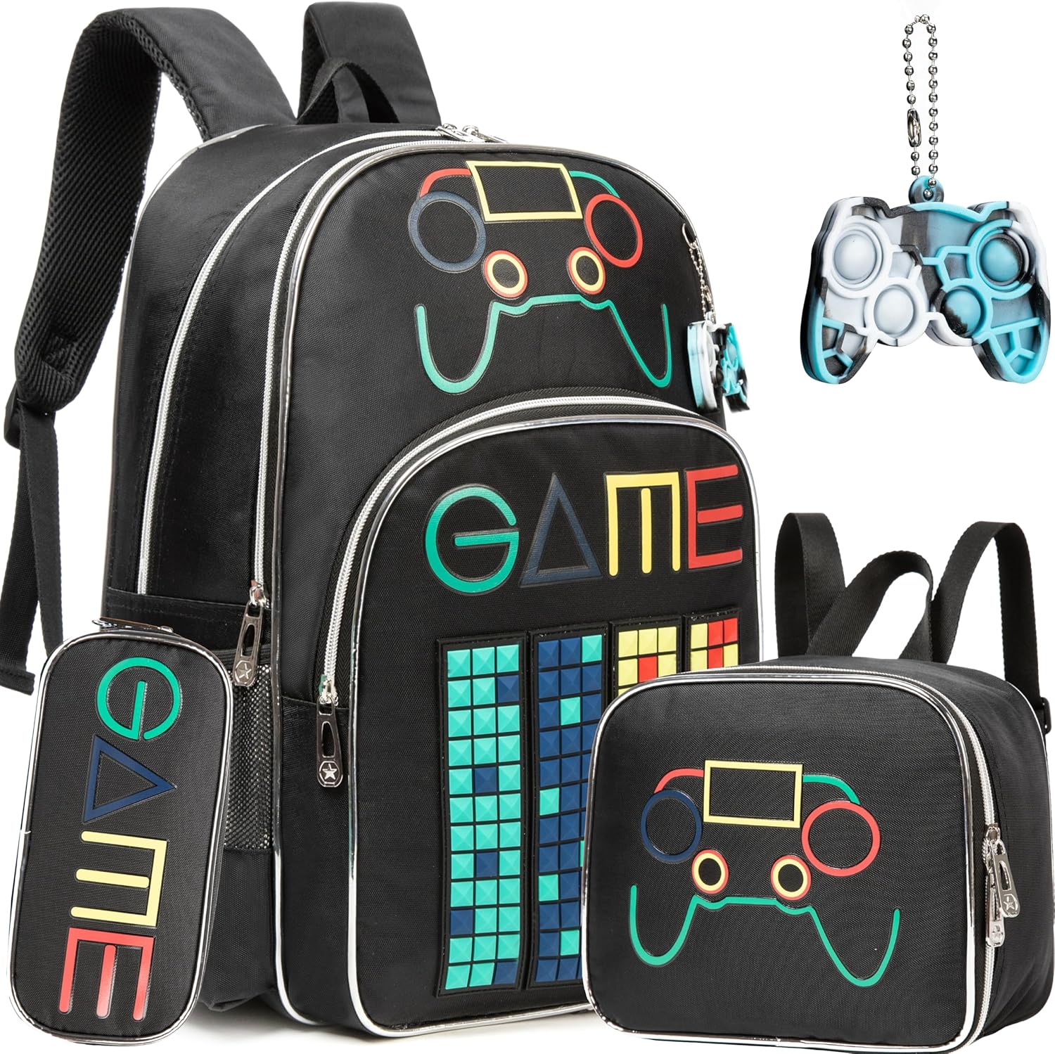 - [Cute Cat Backapck Size]4 in 1 girls backpack,you will get 1 backpack,1 lunch box,1 pencil case and 1 pendant.★Backpack:17"X11.8"X6.7"Lunch Box:9.4"X7.8"X4"Pencil Case:9"