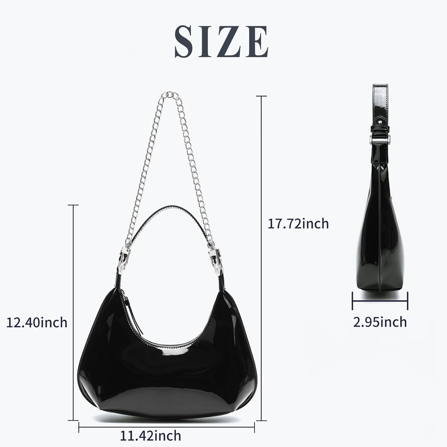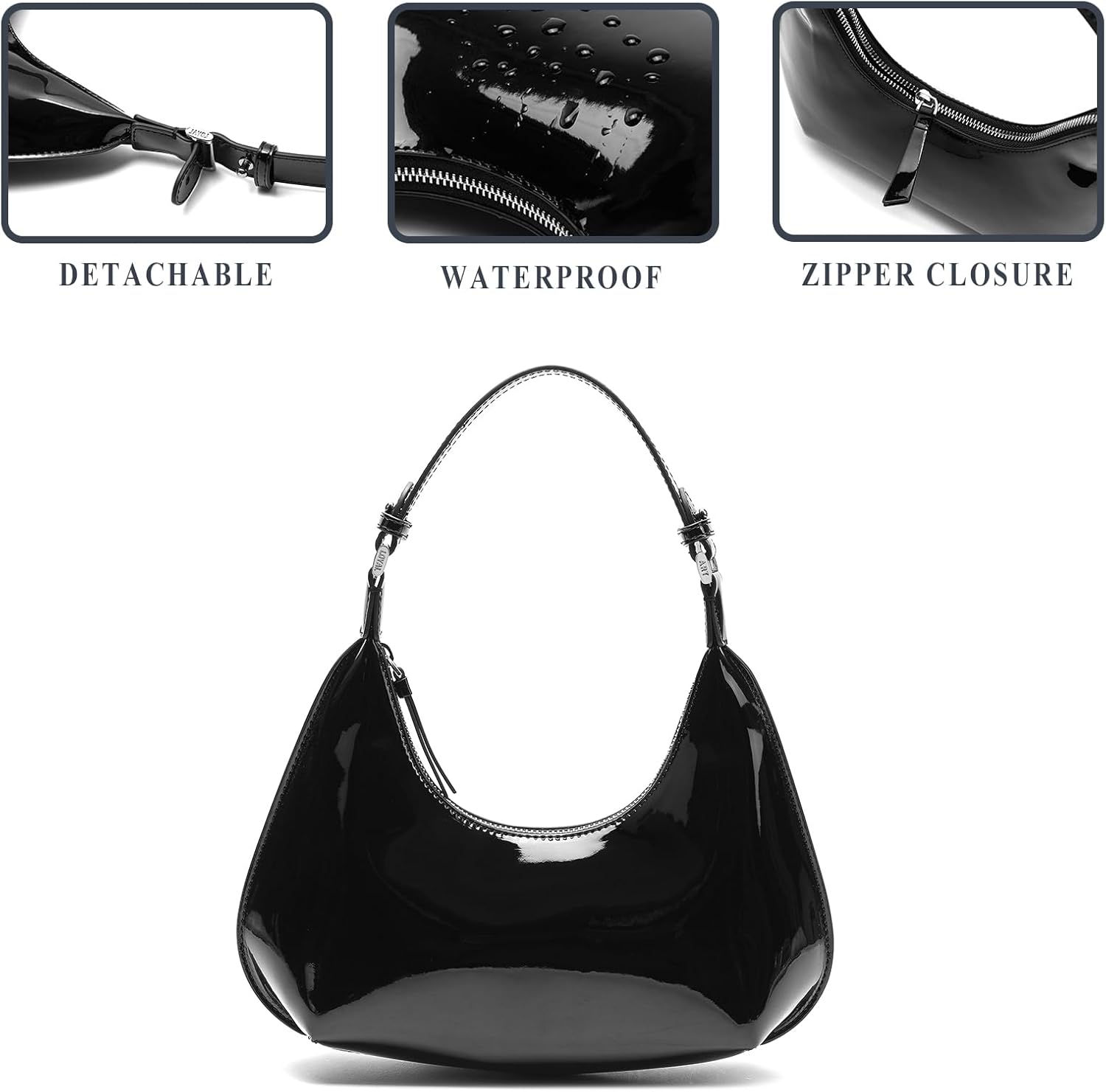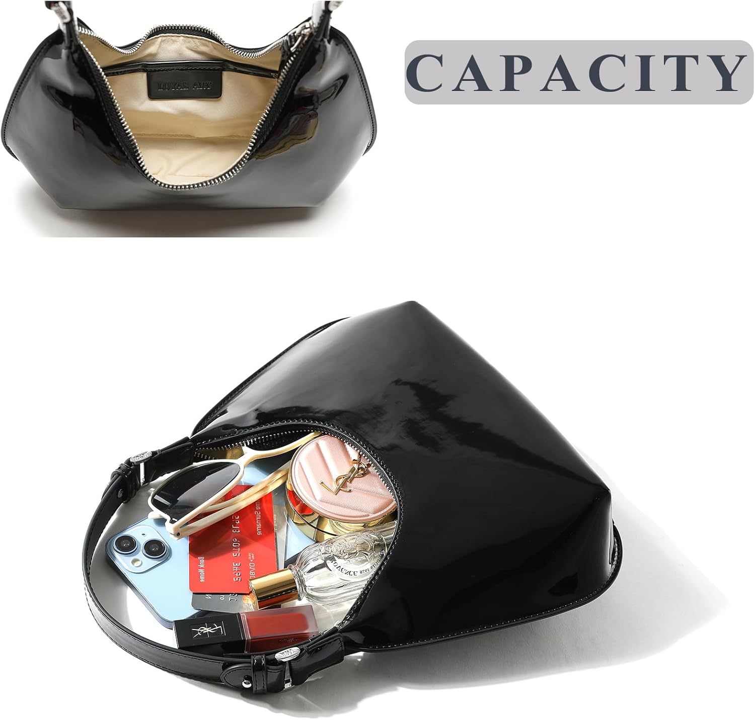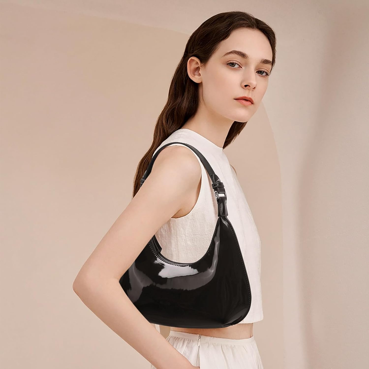 Purilite Select | Patent Leather Crescent Shoulder Bag | Small Going-Out Purse for Women | Cute Zipper Handbag with Adjustable Strap