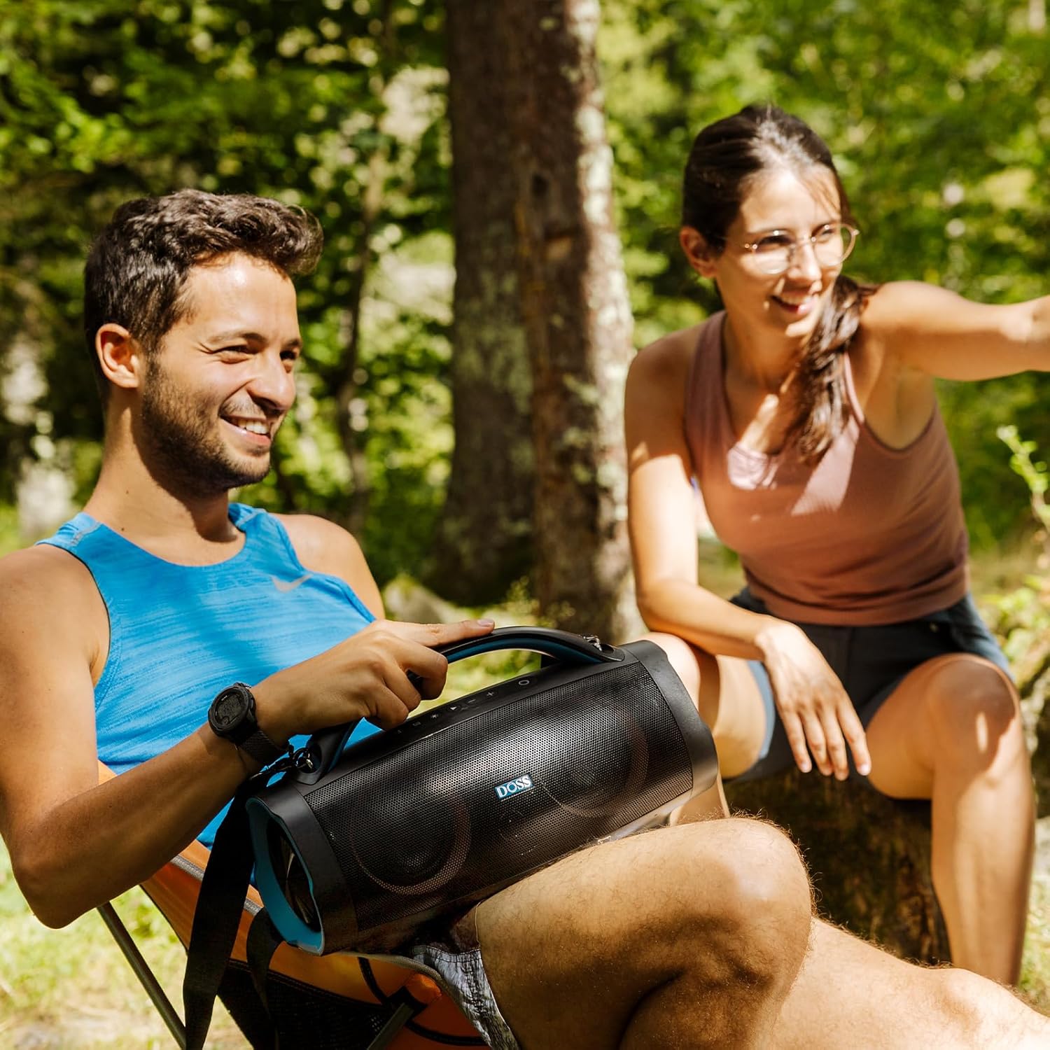 - IPX6 Waterproof: Solid design with IPX6 waterproof, this outdoor speaker unleashes powerful sound on the go. By the poolside, at the beach, in the backyard, at park gatherings, or at other ongoing outdoor adventures, just feast on your preferred tunes anywhere rain or shine fearlessly. With a built-in handle and detachable strap, the DOSS Extreme Boom Pro portable speaker makes it easy to start the party anywhere. Get more power and portability for your playlist.