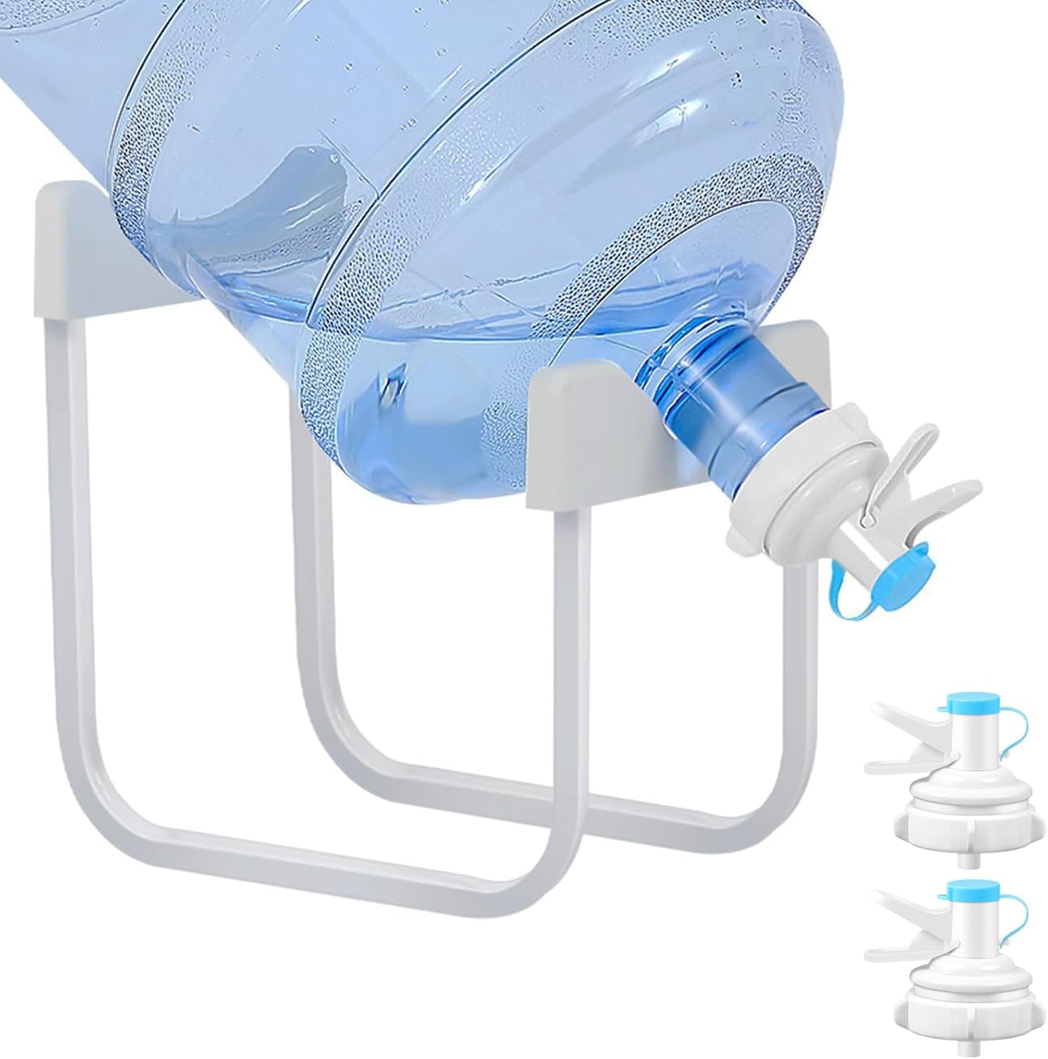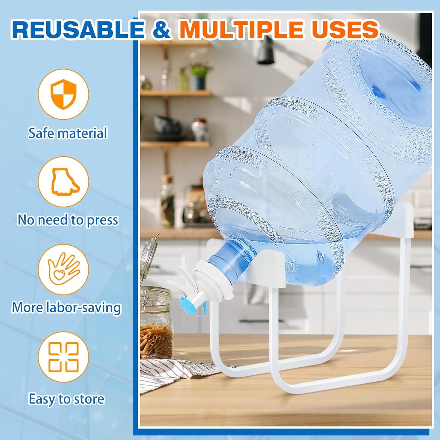 Metal 5 Gallon Water Jug Stand Dispenser with 2.15 Inch Dustproof Valve,Non-Slip Drinking Water Cooler Rack with two Reusable Spout