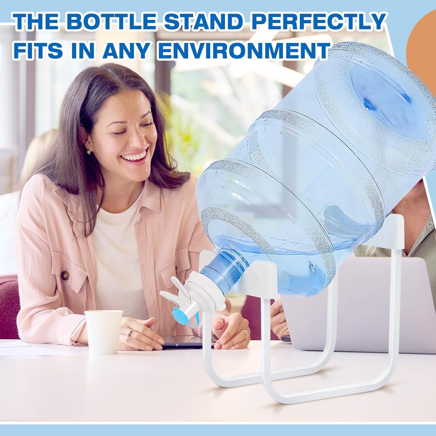 Eazmate Metal 5 Gallon Water Jug Stand Dispenser with 2.15 Inch Dustproof Valve, Non-Slip Drinking Water Cooler Rack with Two Reusable Spout