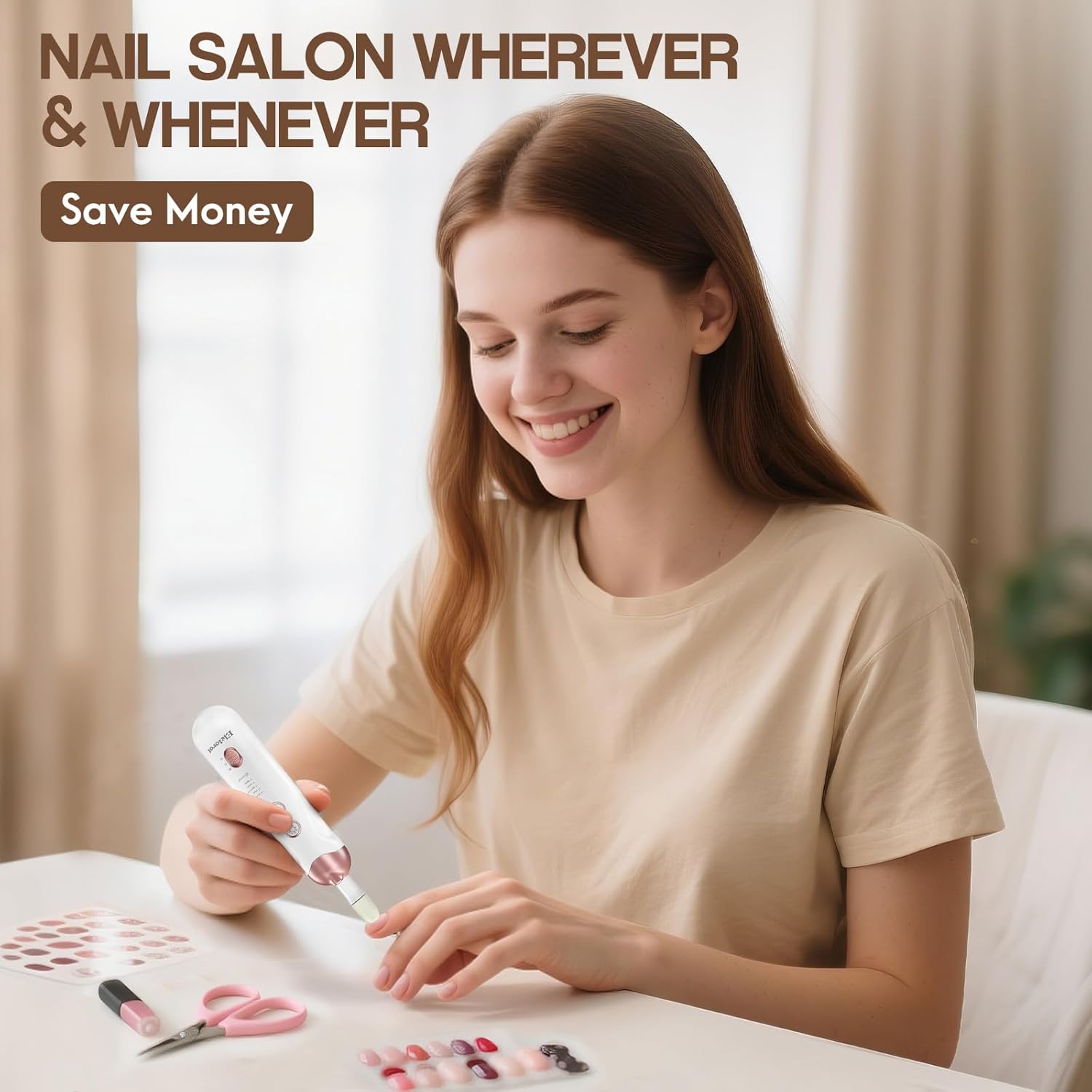 Professional Manicure and Pedicure Set: Designed for hand and foot care experience at home, the salon-quality electric nail file for women is suitable for trimming, grinding and polishing natural nails and thick nails. It also effectively removes cuticles, calluses, dead skin, corns, and hard skin, giving you healthy and neat nails, as well as comfortable hand and foot care.