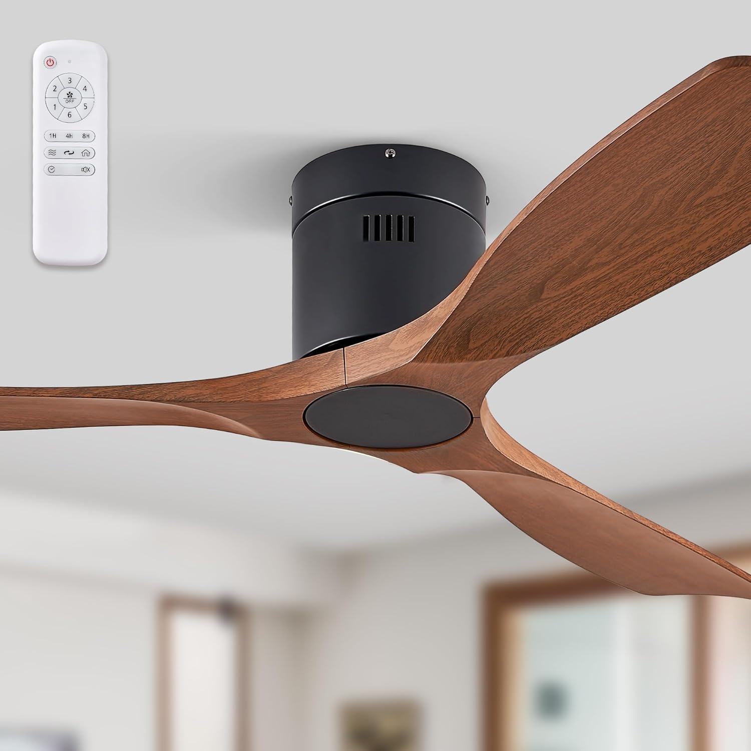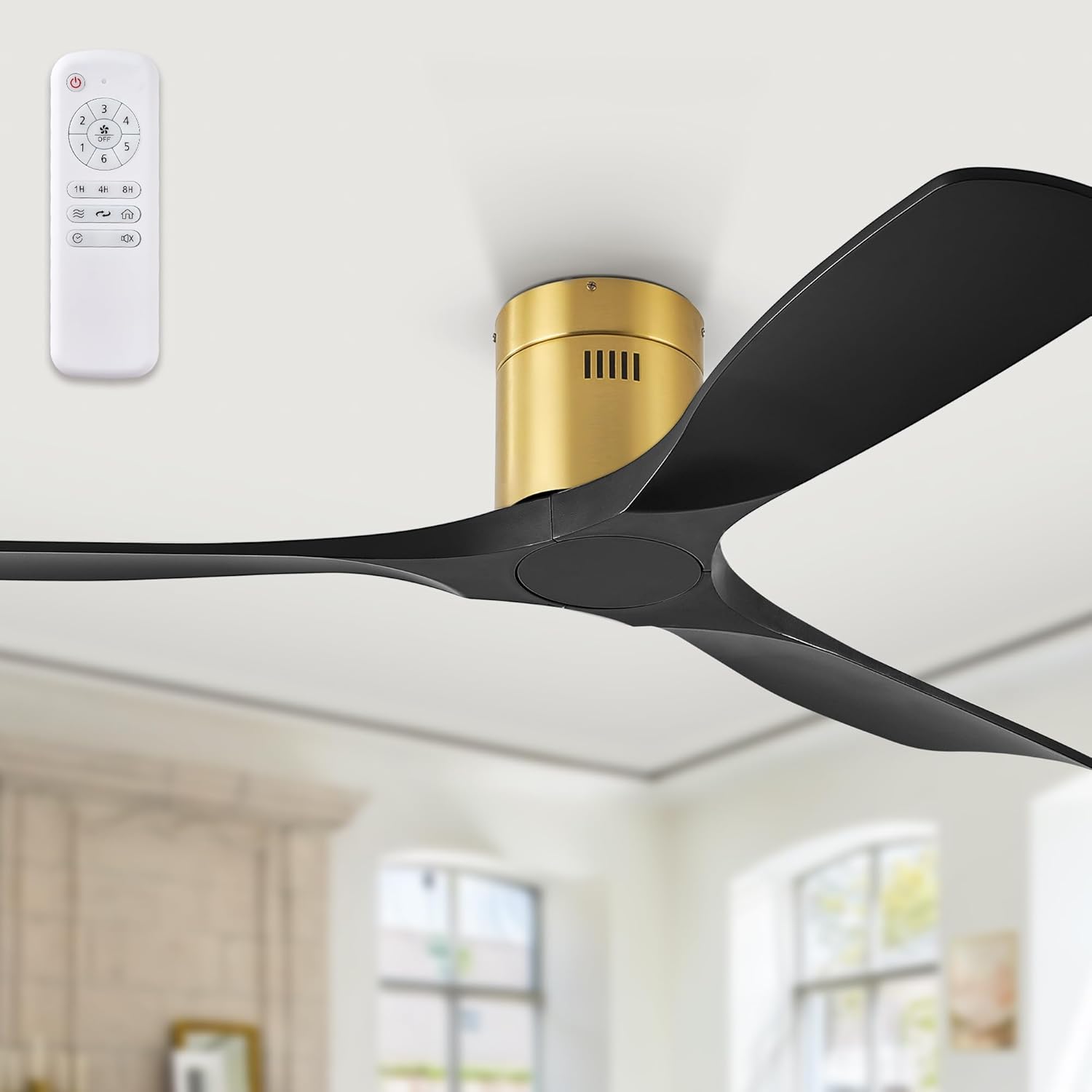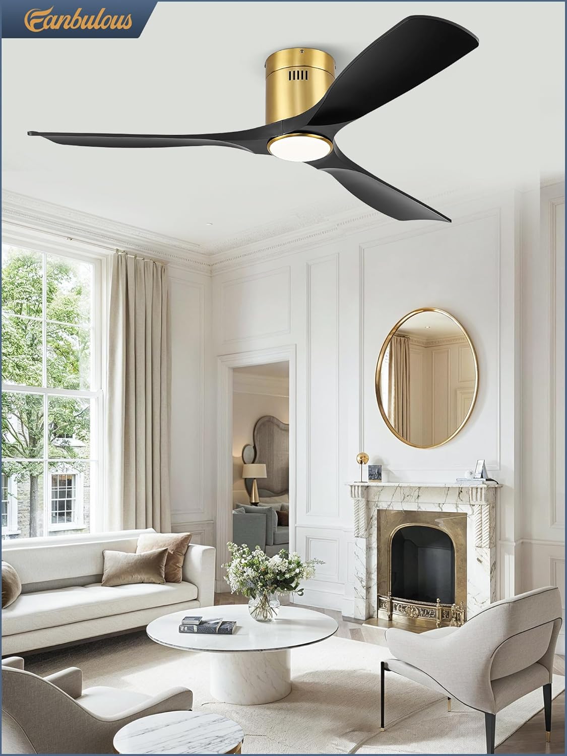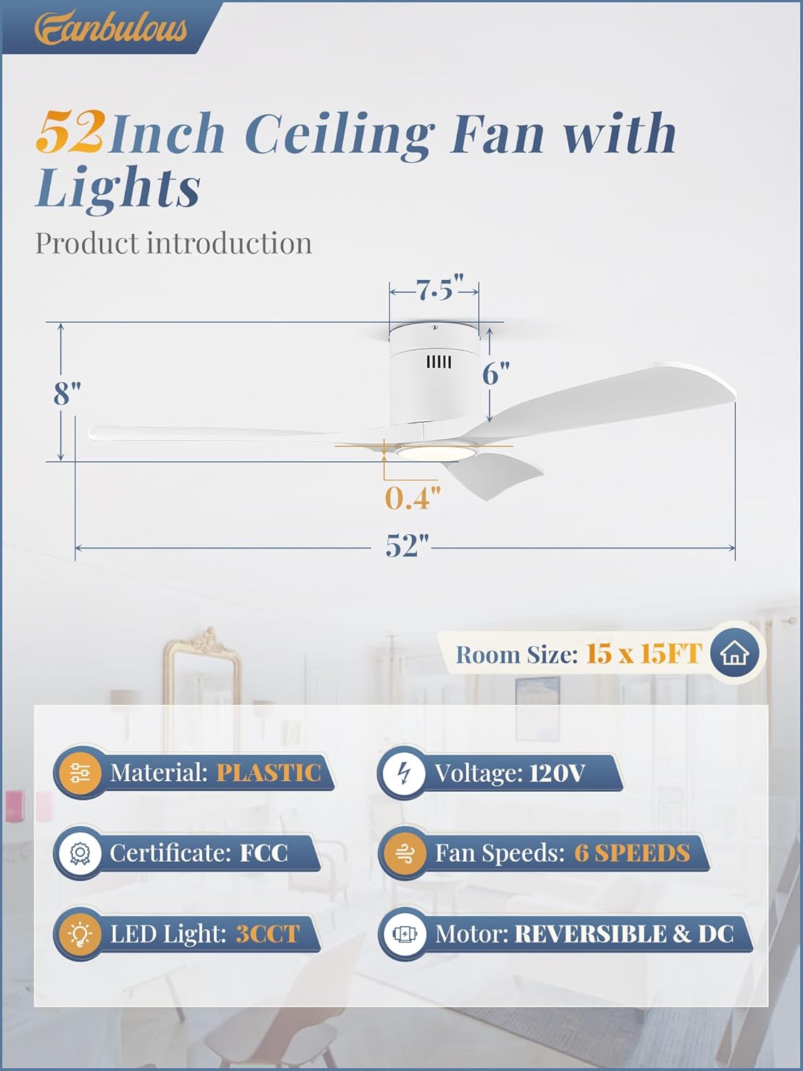 Fanbulous 52" Ceiling Fans with Lights and Remote Control,Modern Flush Mount Ceiling Fan with 3 LED Colors,Outdoor Low Profile Ceiling Fans with 6-Speeds Timer DC Motor for Bedroom Living Room Patio