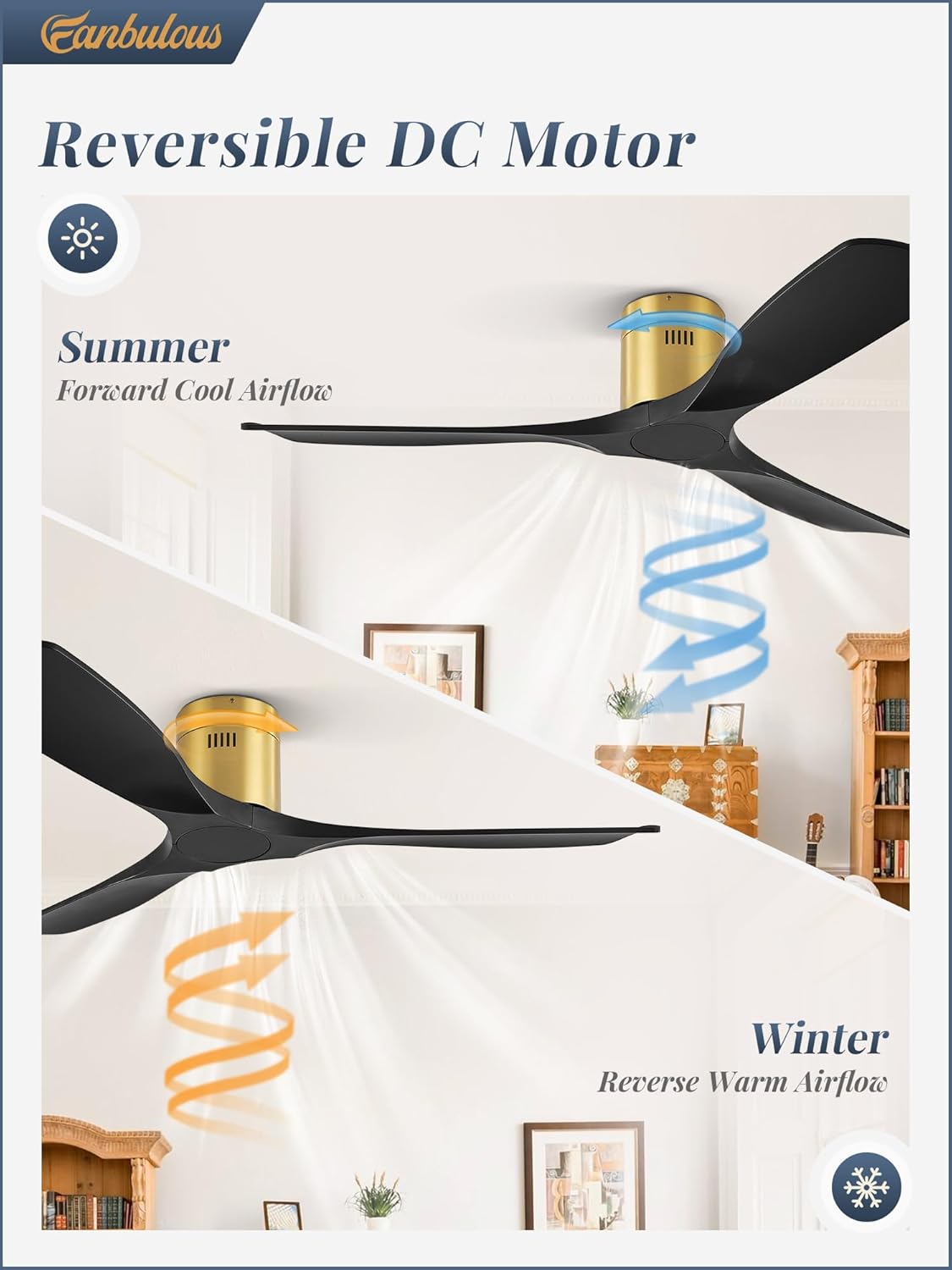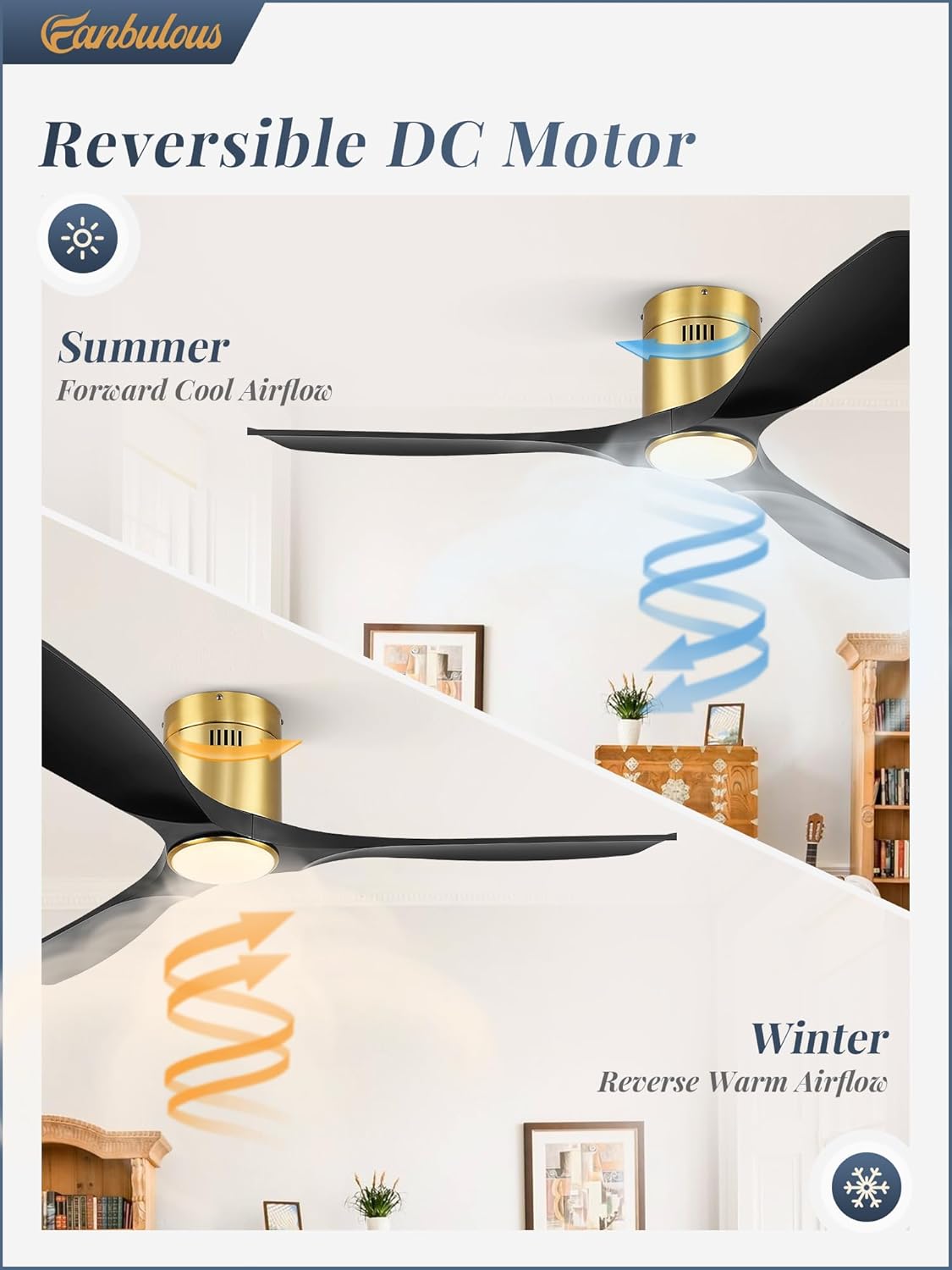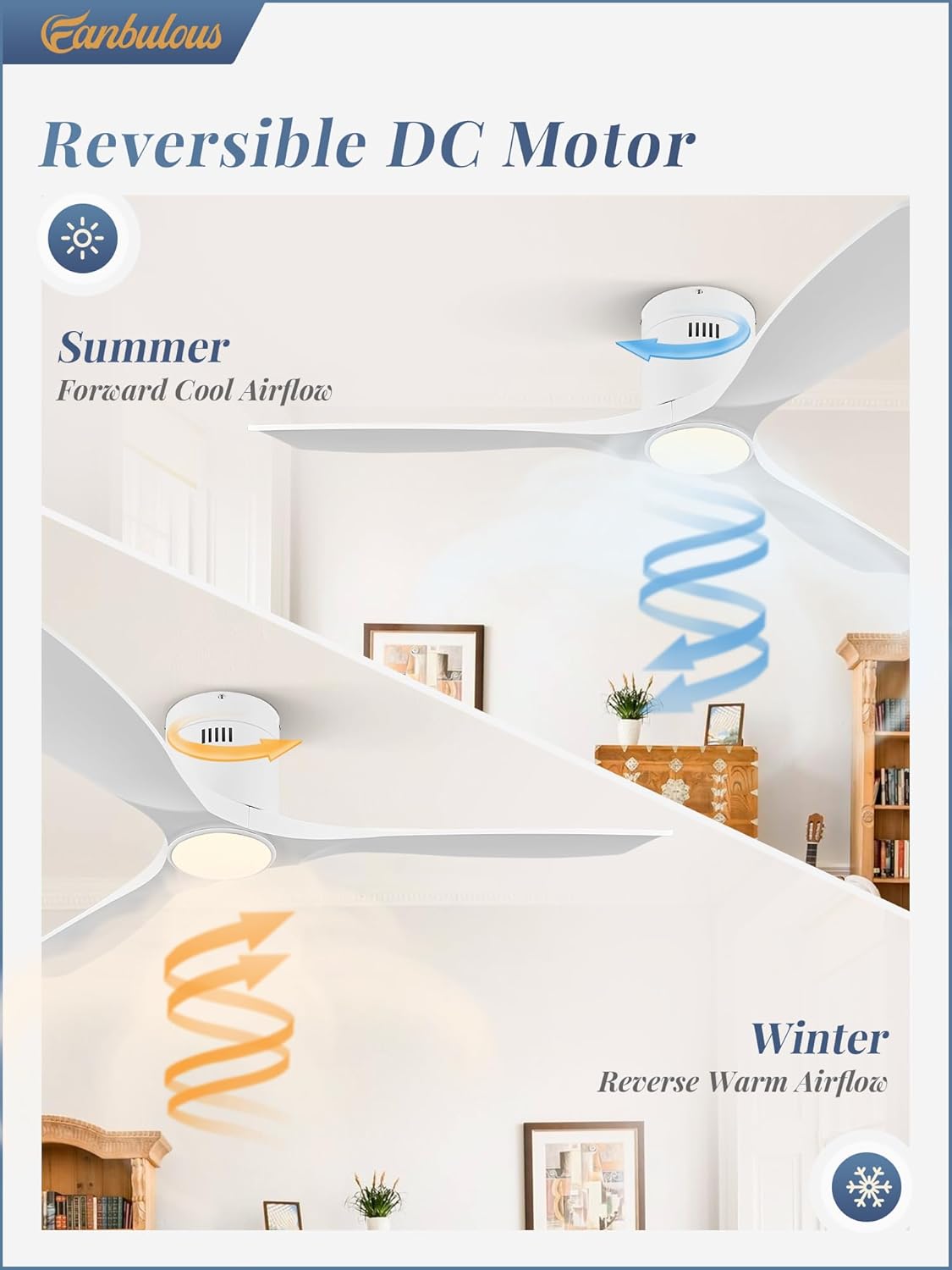 - DC MOTOR TECHNOLOGY: The Fanbulous ceiling fans operates with energy savings,powered by advanced reversible DC motor technology.In the summer, bask in the cool breeze as the fan's forward airflow. Come winter, engage the reverse function to ensuring a cozy and evenly heated space.