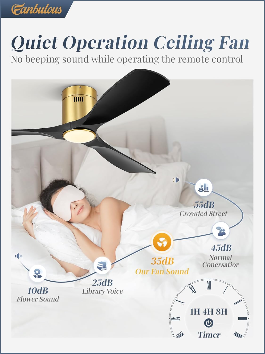 - TIMER & WHISPER-QUIET: The Fanbulous ceiling fan with lights have immerse yourself in tranquility with silent yet powerful( the noise level less than 35 dB).And ceiling fan with lights has 3 timers (1H/4H/8H),Revel in a serene environment while experiencing uncompromised performance.
