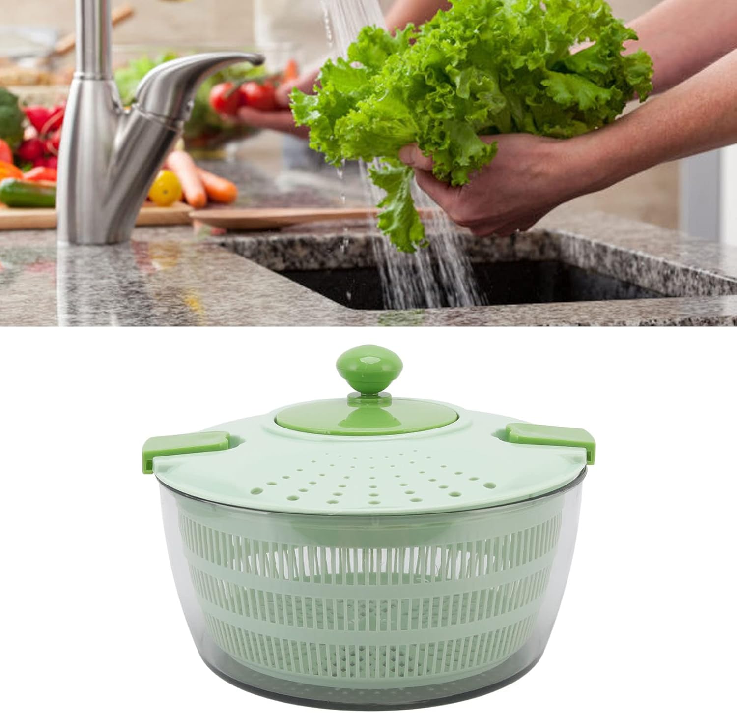 FLEXMAN 4L Salad Spinner, Vegetable Dryer, Multifunction Salad Drainer Bowl, Manual Lettuce Dryer for Dry Freshly Washed Lettuce, Spinach, Cabbage