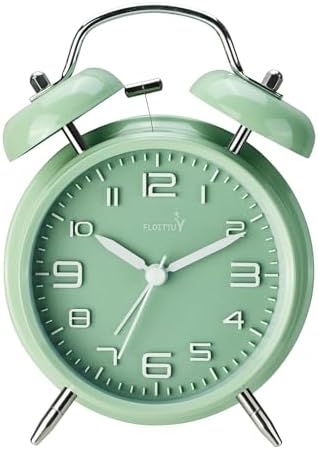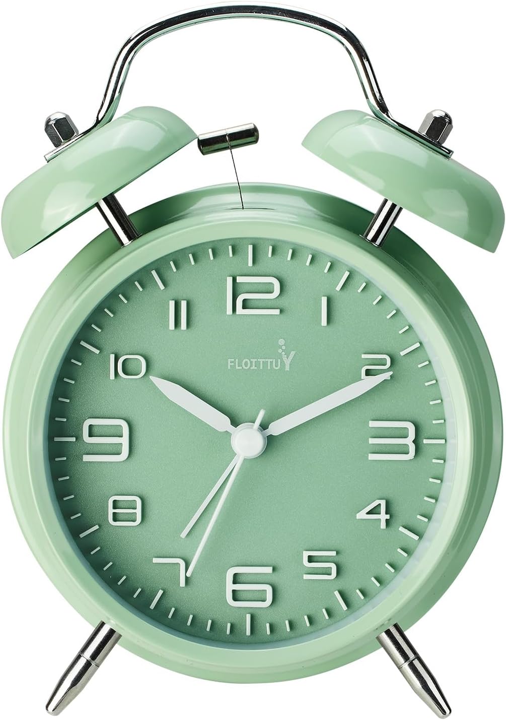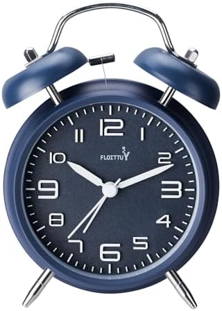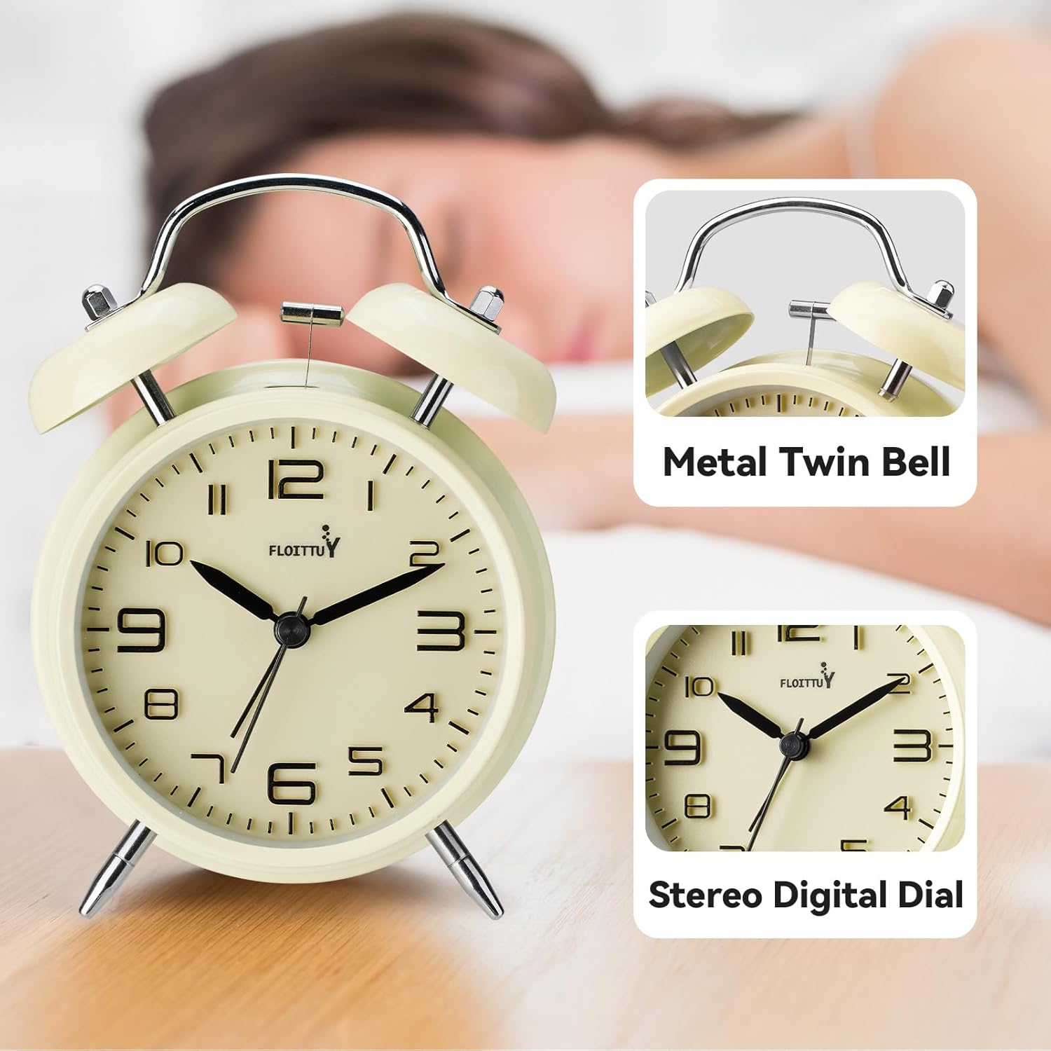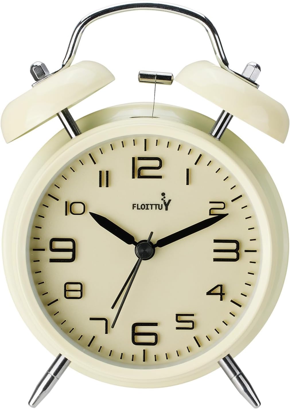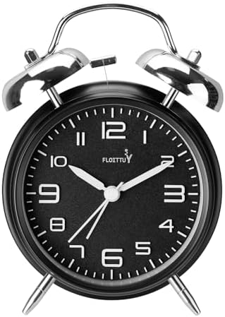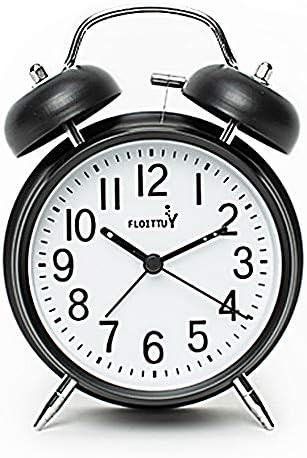 FLOITTUY (Loud Alarm for Deep Sleepers) 4'' Twin Bell Alarm Clock with Backlight for Bedroom and Home Decoration(Black)