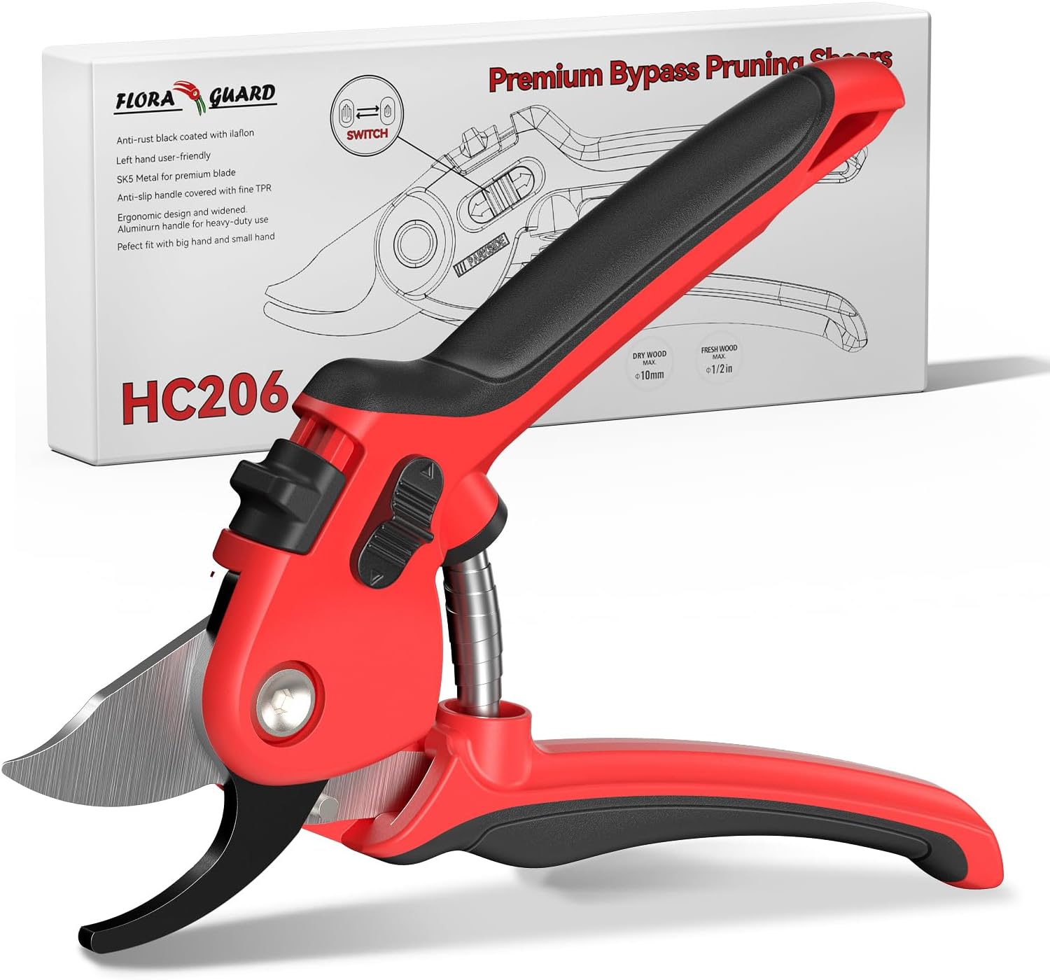 Flora Guard Bypass Pruning Shears, Professional Garden Pruning Shears (Long Blade)
