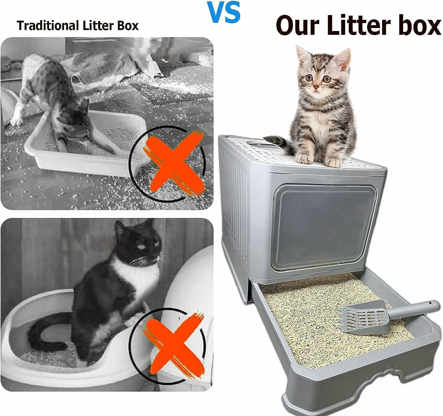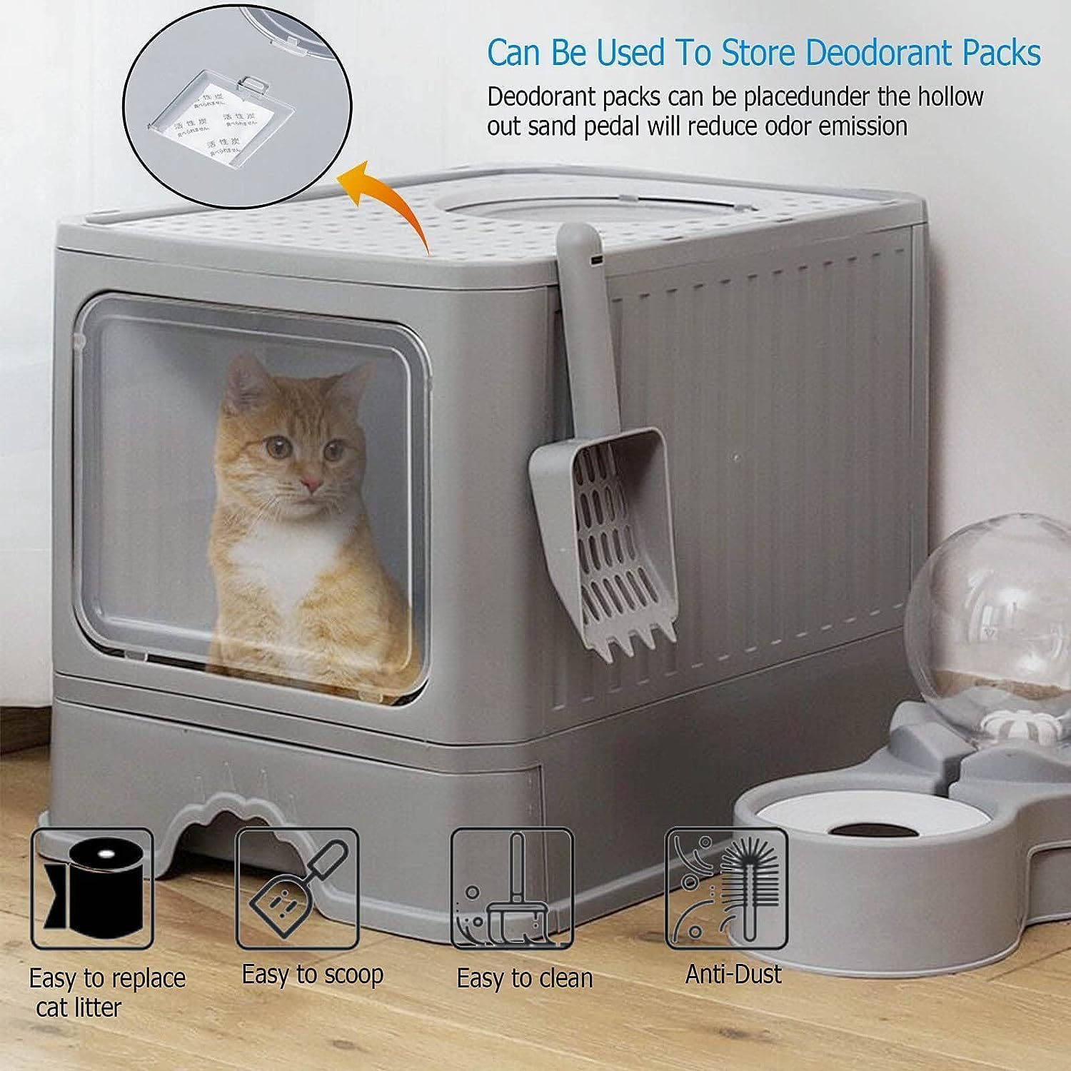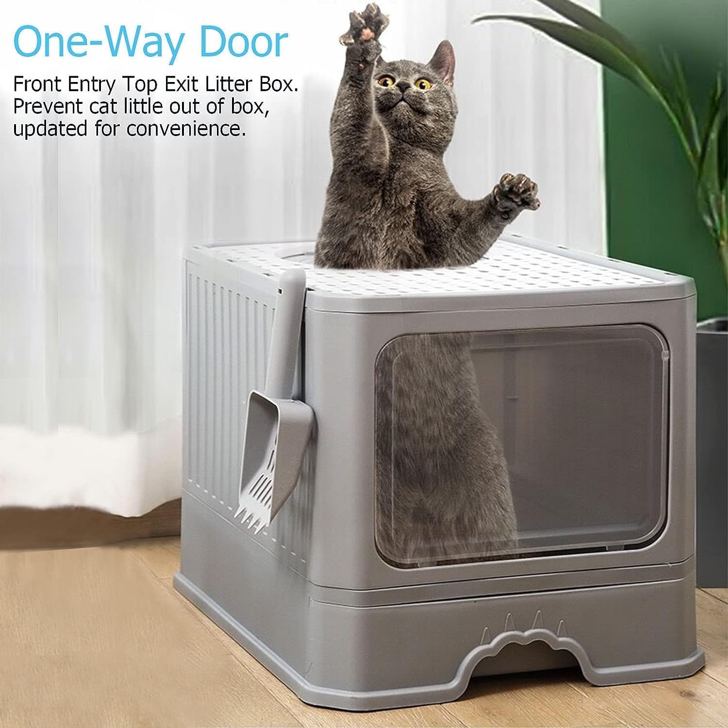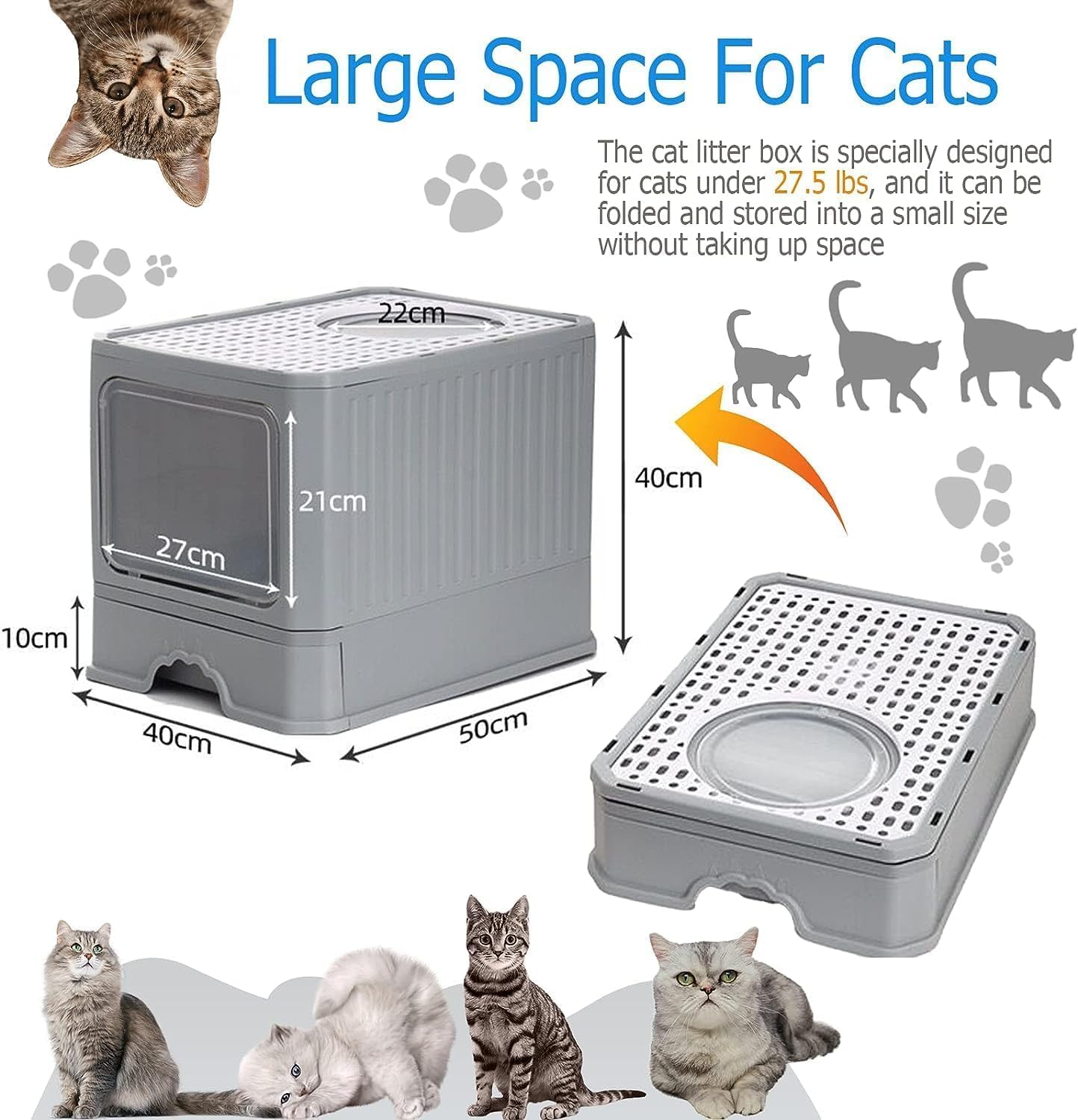Foldable Cat Litter Box, Acotsun Extra Large Front Entry Enclosed Cat Potty, Top Entry Anti-Splashing Cat Toilet, Litter Cat Box