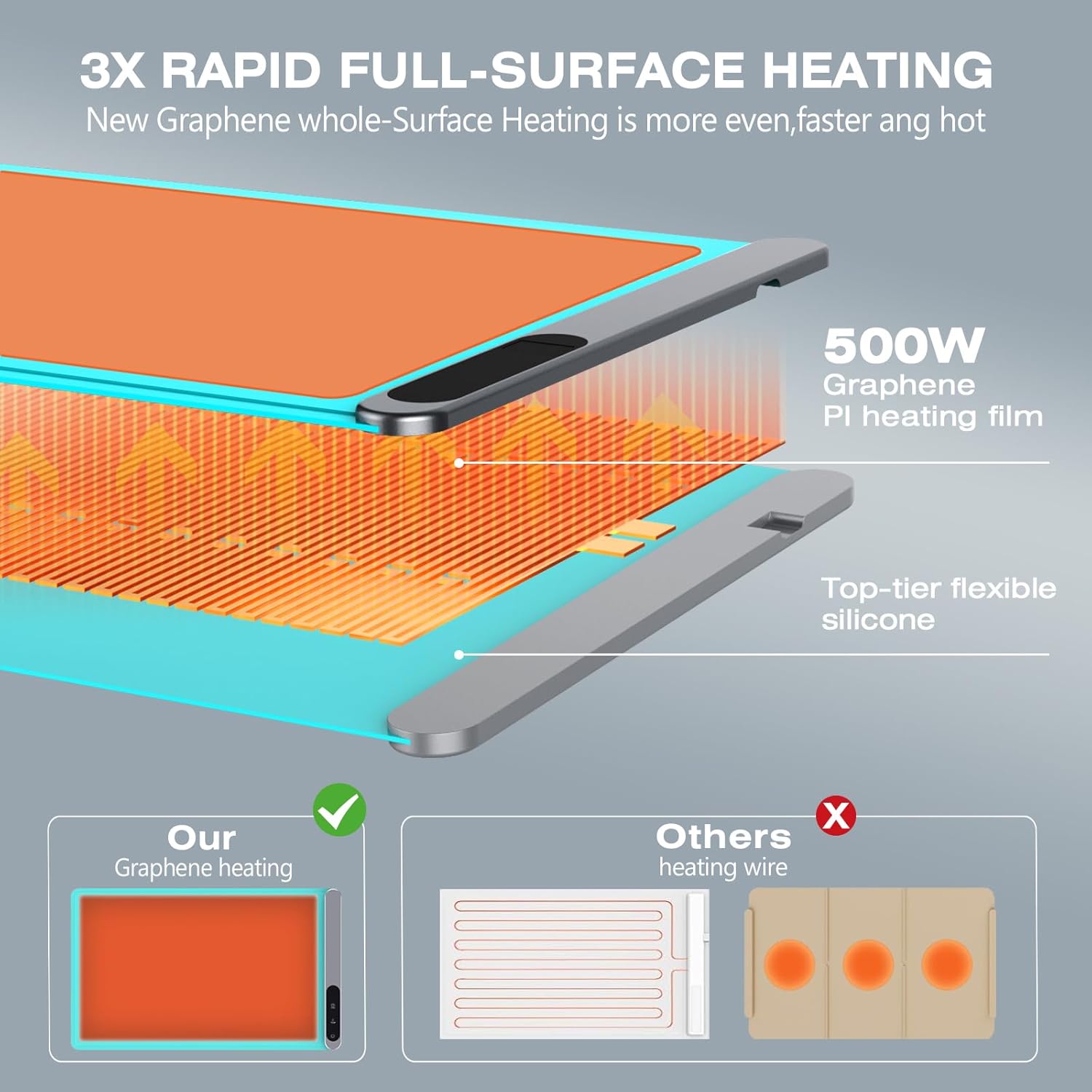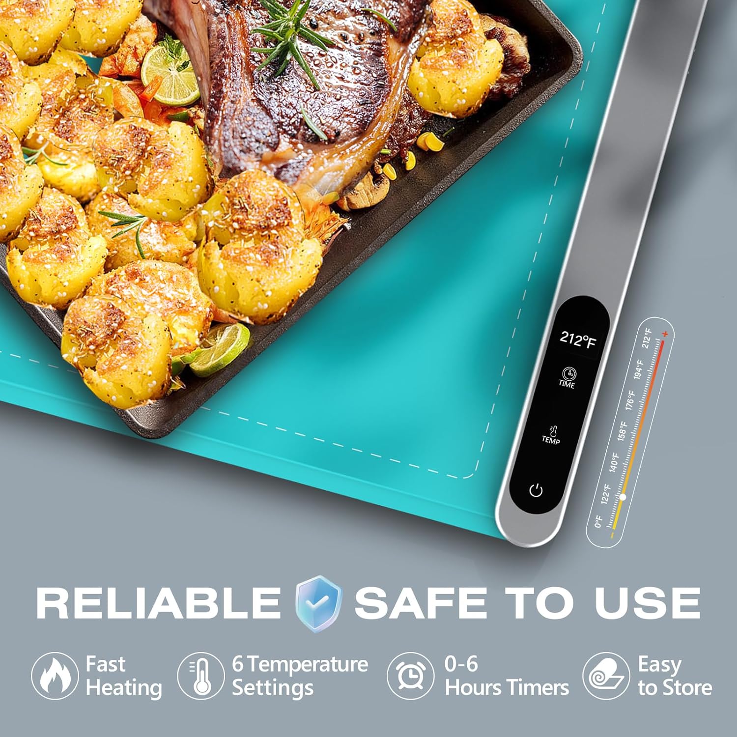 Food Warming Mat, Upgraded Graphene Full Surface Heating Foldable Heater Food Pad, Compact Silicone Materials, 6 Heat Settings, Multifunctional Food Warmers for Parties Buffet, Events, Daily Life Use