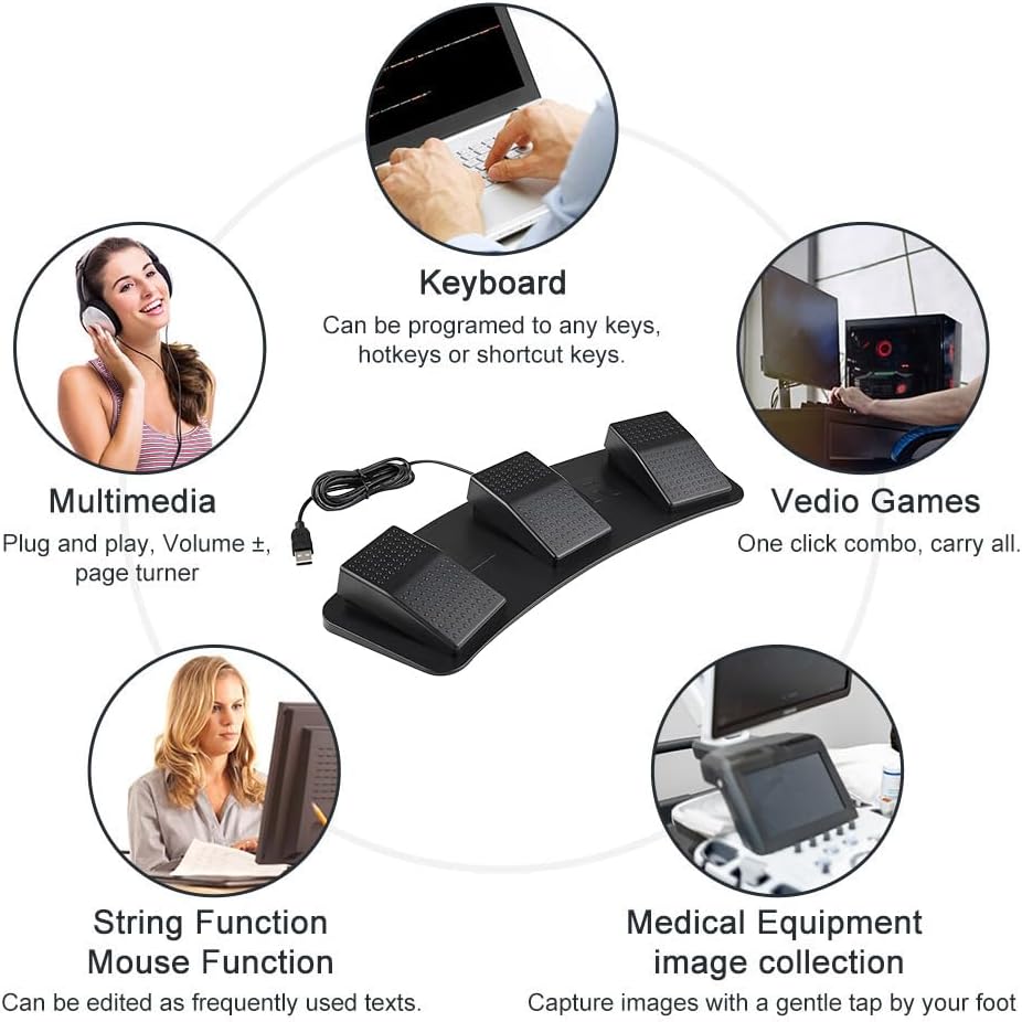 - This Triple USB Foot Pedal is equivalent to a standard USB keyboard and mouse with one key, the key can be defined through the corresponding software as keyboard, mouse, multimedia, game, string function. It can set as any shorcut keys, hotkey or combination key and so on.