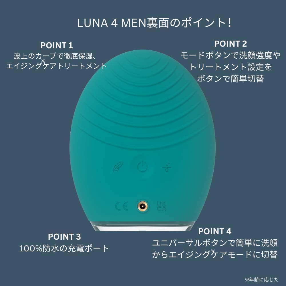 FOREO LUNA 4 MEN Face Cleansing Brush for Skin & Beard | Firming Face Massager | Anti Aging Face Care | Enhances Absorption of Facial Skin Care Products | App-connected | USB-rechargeable | Waterproof
