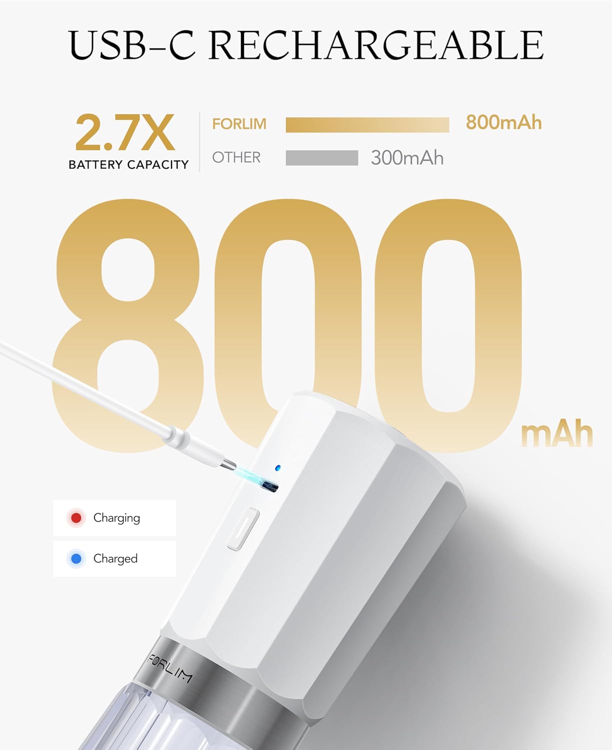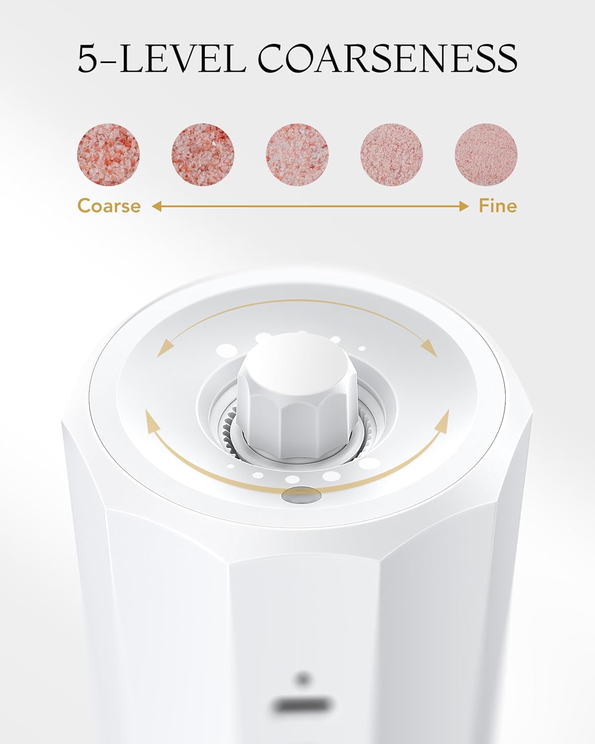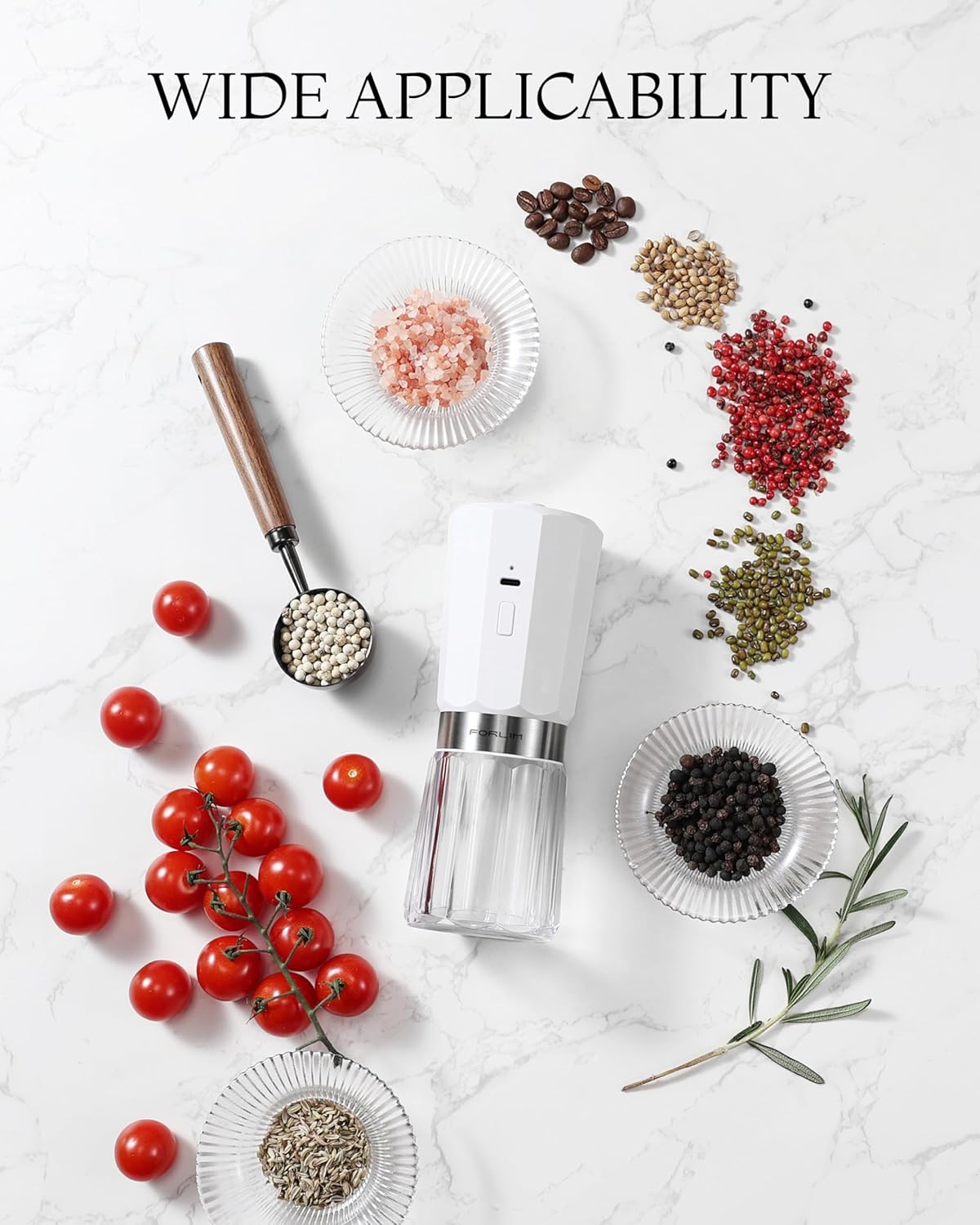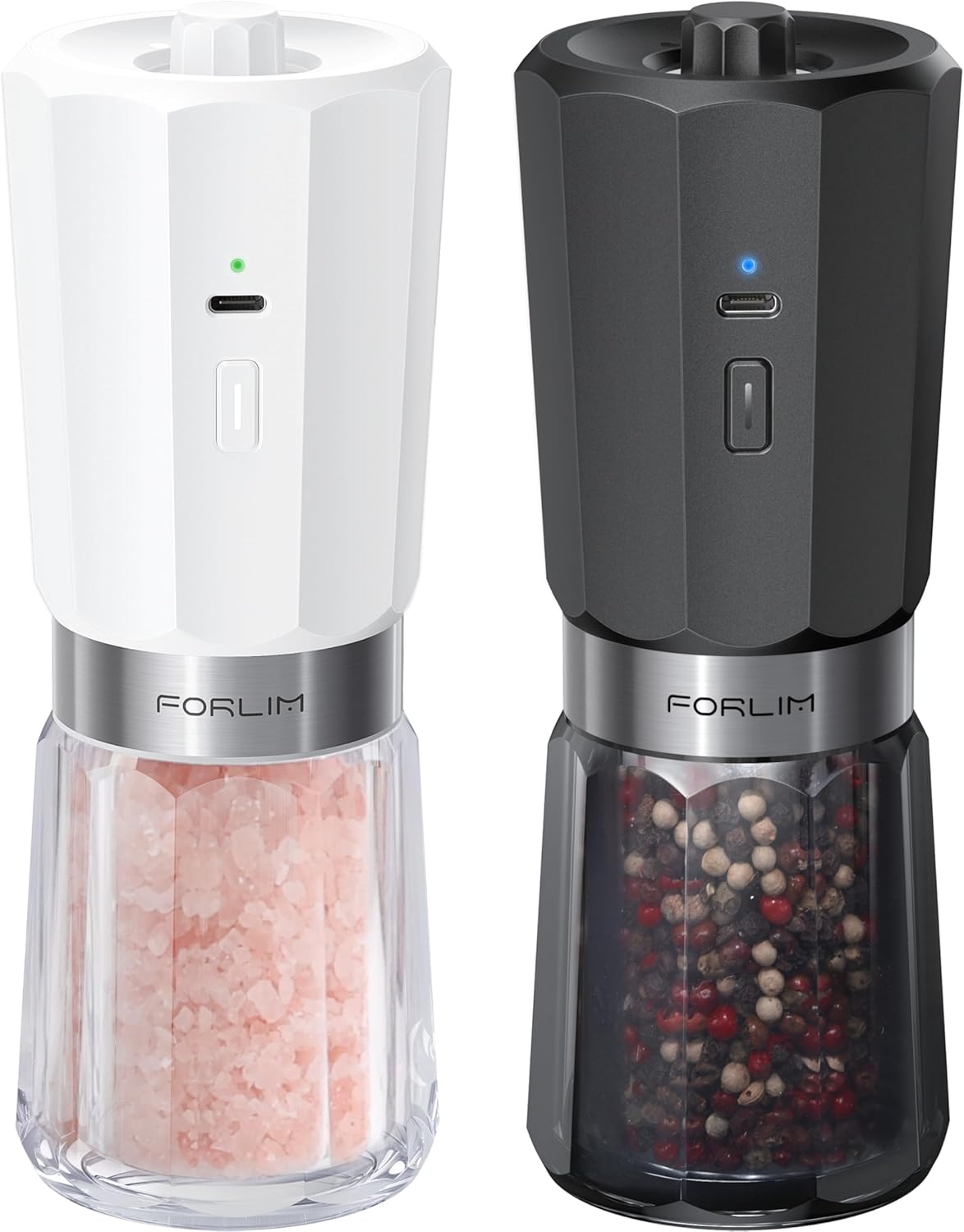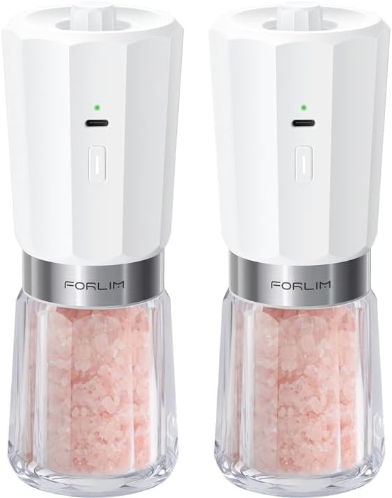 FORLIM 2-Speed Electric Salt and Pepper Grinder Set, 800mAh Rechargeable, Upgraded Auto-Reverse Clean After Stop, Pepper Shakes with White LED, Ceramic Grinding Core, Black & White