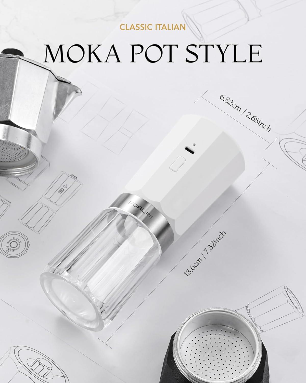 Operation Mode Automatic - Unique Retro Design – Inspired by the classic Italian Moka pot, this electric salt and pepper grinder set features a minimalist yet timeless design. Its exquisite appearance adds a stylish and historical touch to your kitchen, making it a standout piece in your cooking space