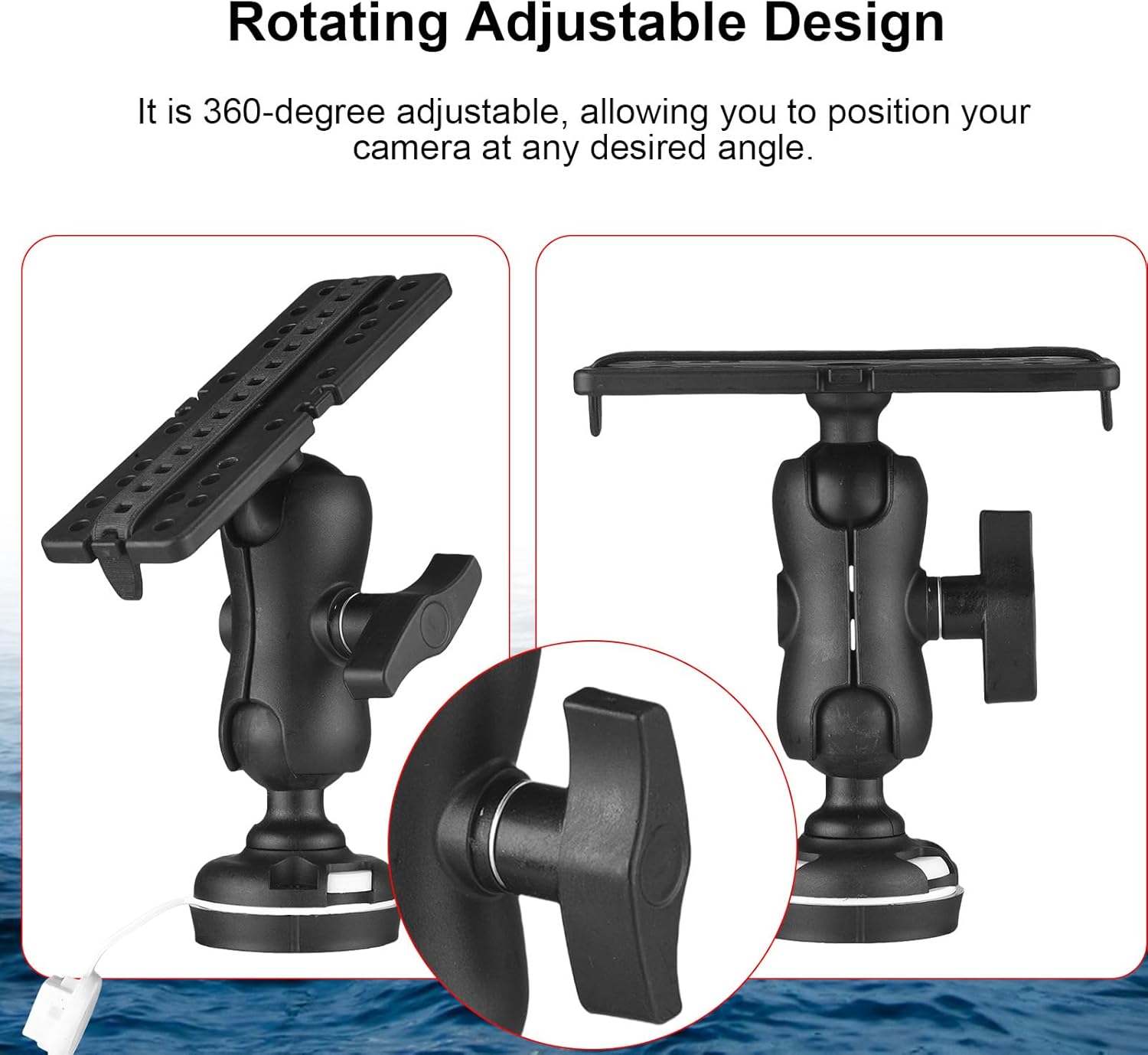 Adjustable & Secured: Featuring adjustable angles and a non-slipping system, this bracket ensures that your fish finder remains in the optimal position for detecting fish at all times.