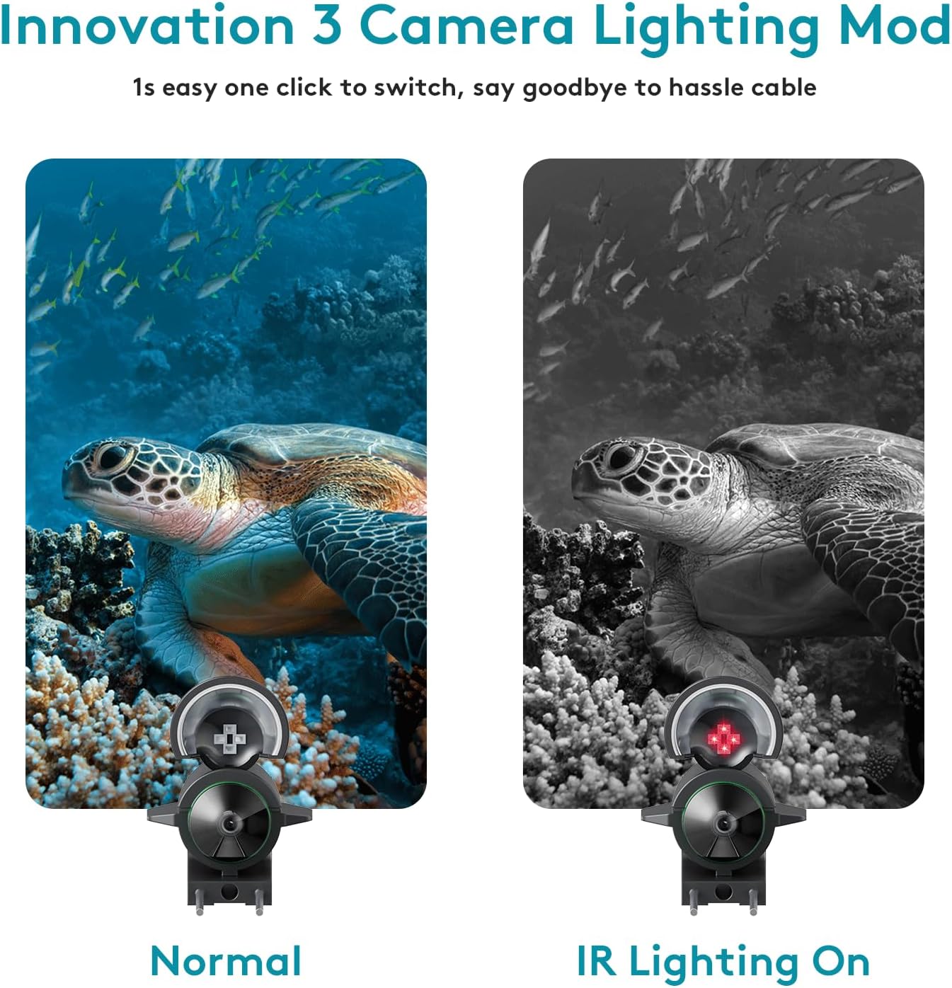 - See in the Dark – Equipped with 4 infrared night vision lights and an ultra-wide 220° lens, our ice fishing underwater camera captures clear, vivid underwater scenes – even in complete darkness. It's the ultimate fish camera for underwater fishing experience.