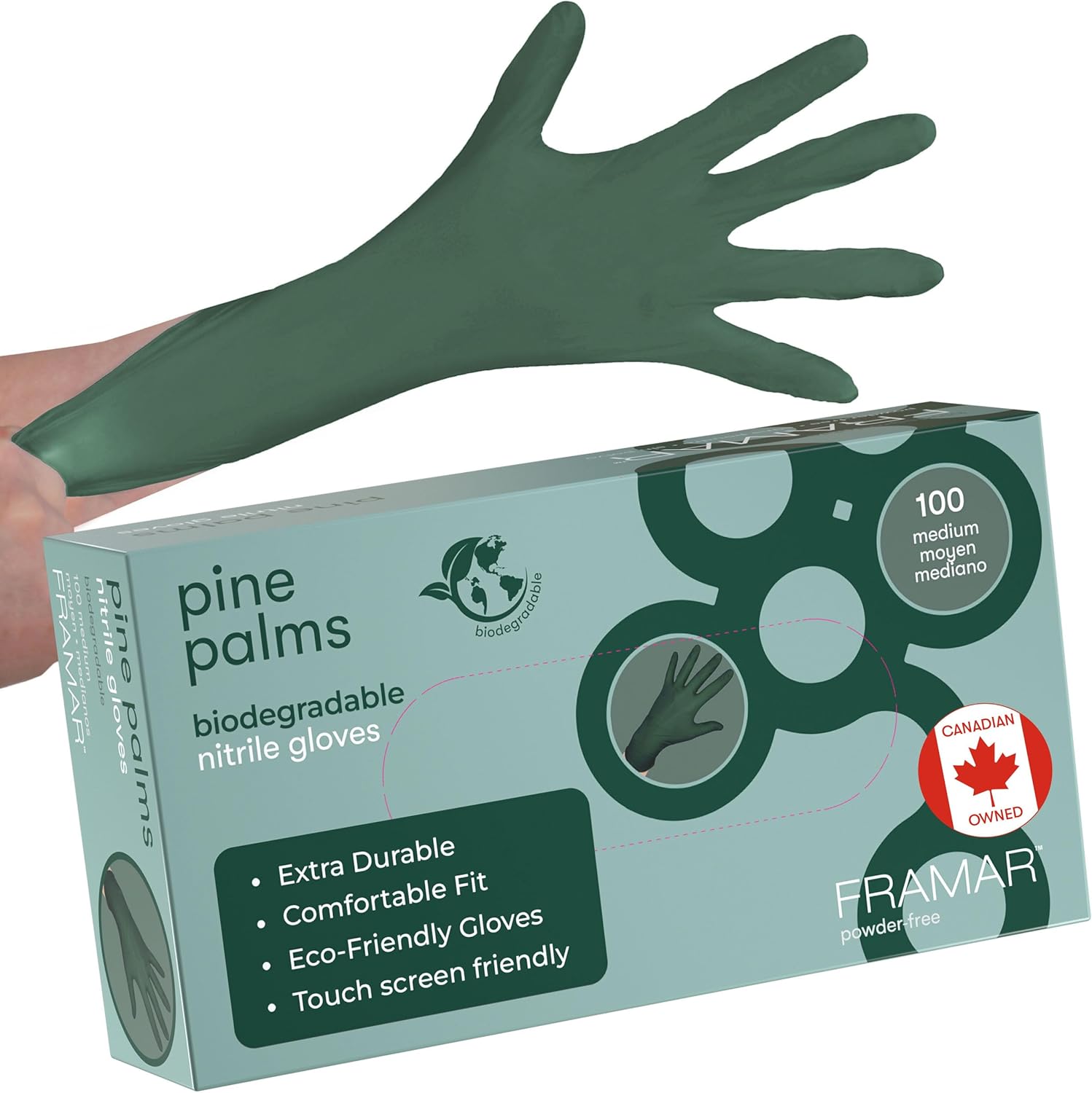 FRAMAR Green Nitrile Gloves Medium - Disposable Gloves Medium, Rubber Gloves Disposable, Cleaning Gloves, Kitchen Gloves, Mechanics Gloves, Cooking Gloves, Gant Latex Gloves Medium, 100