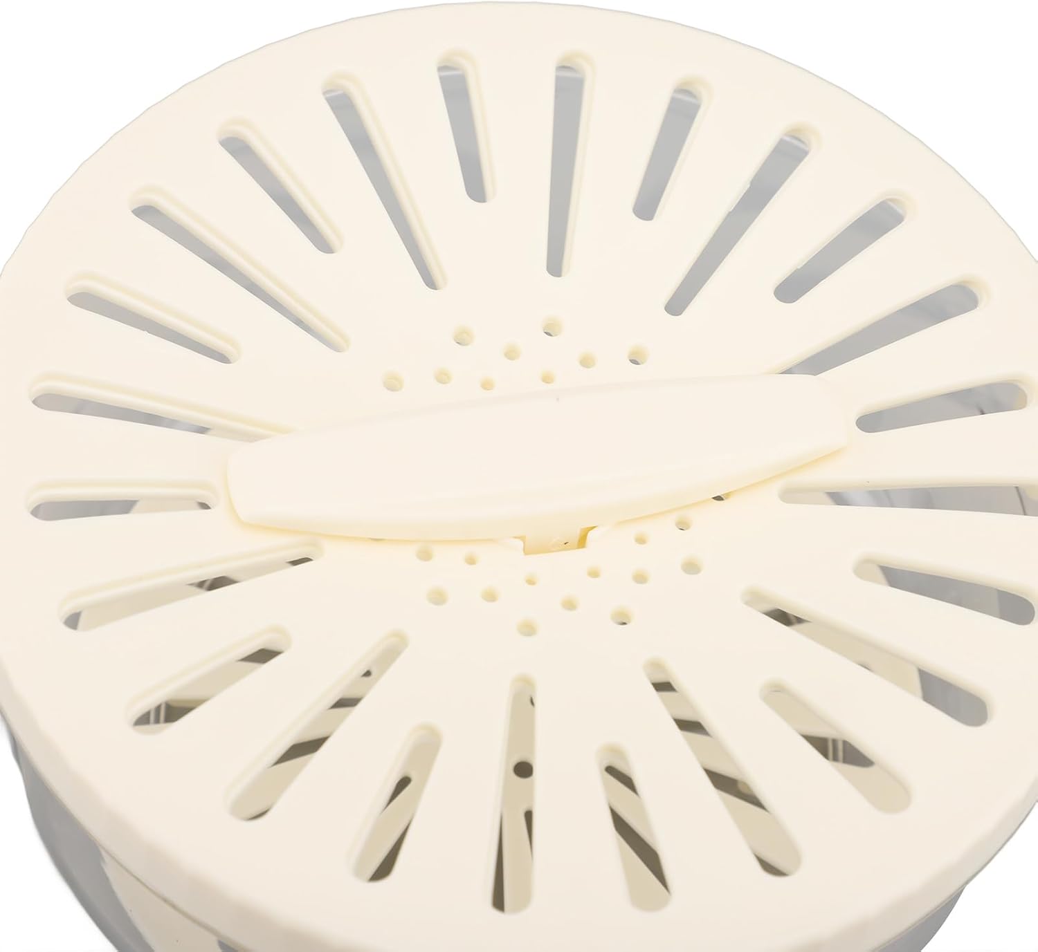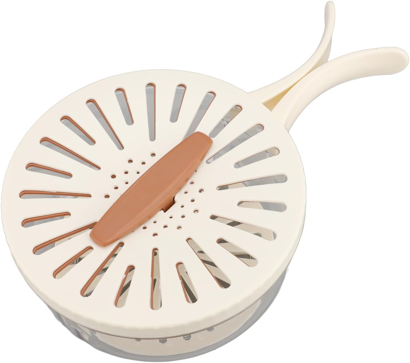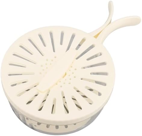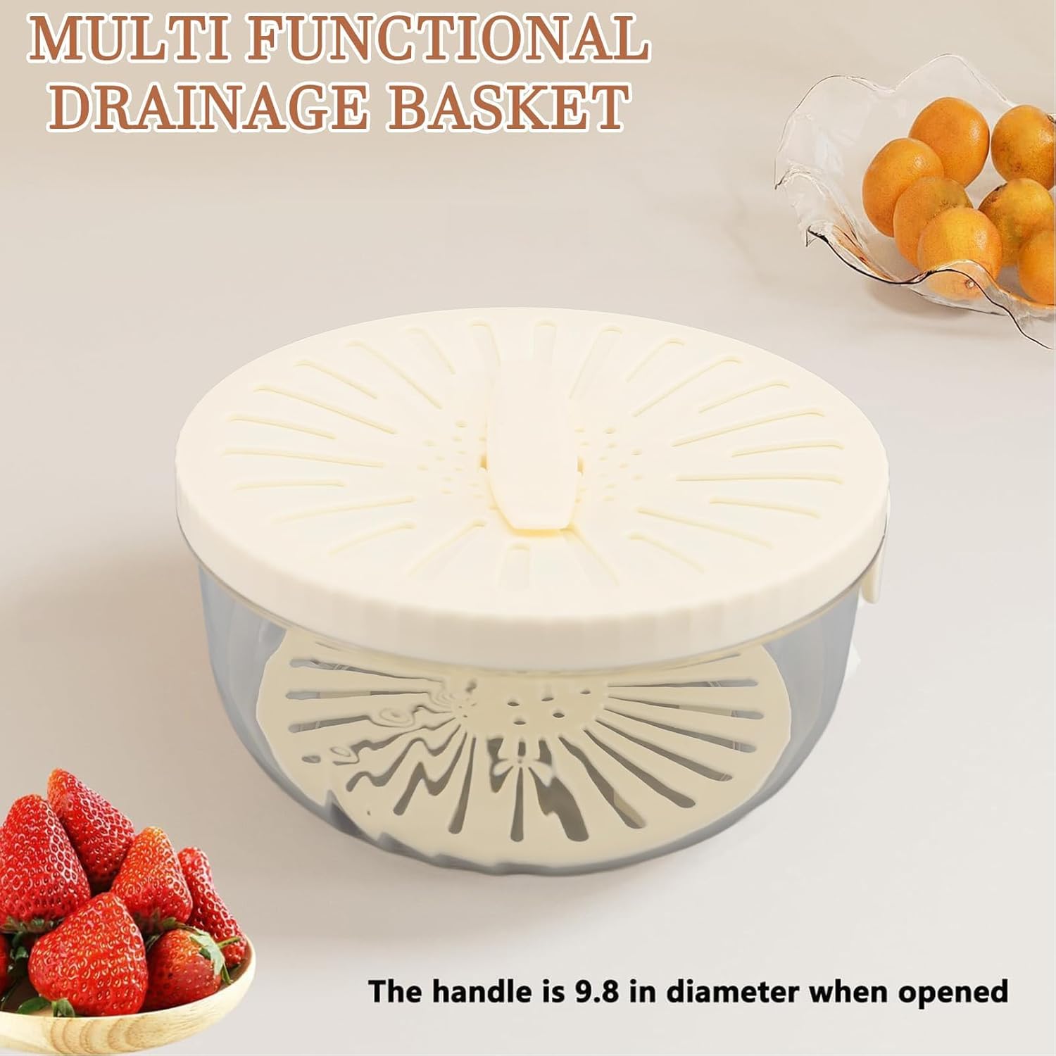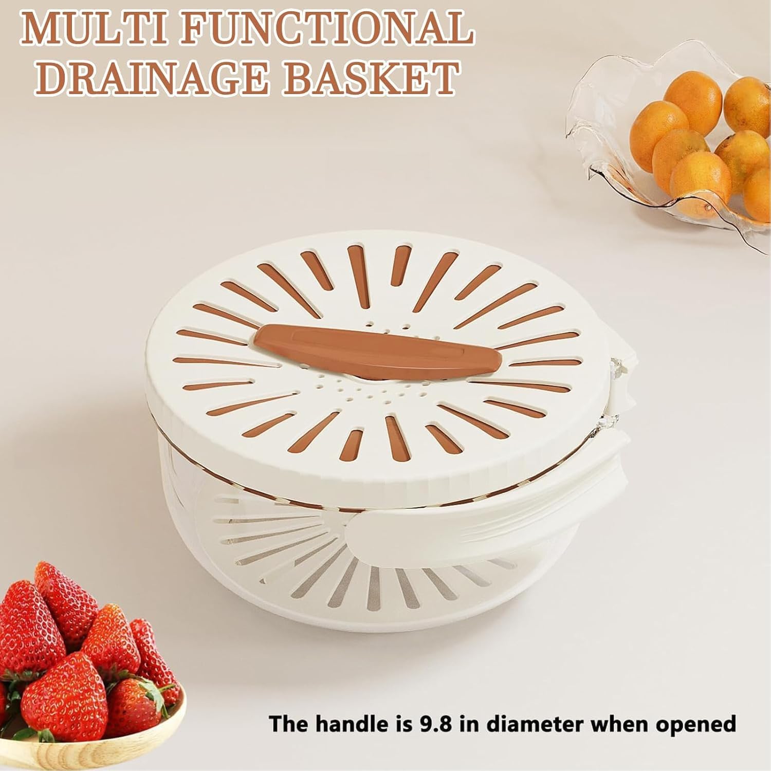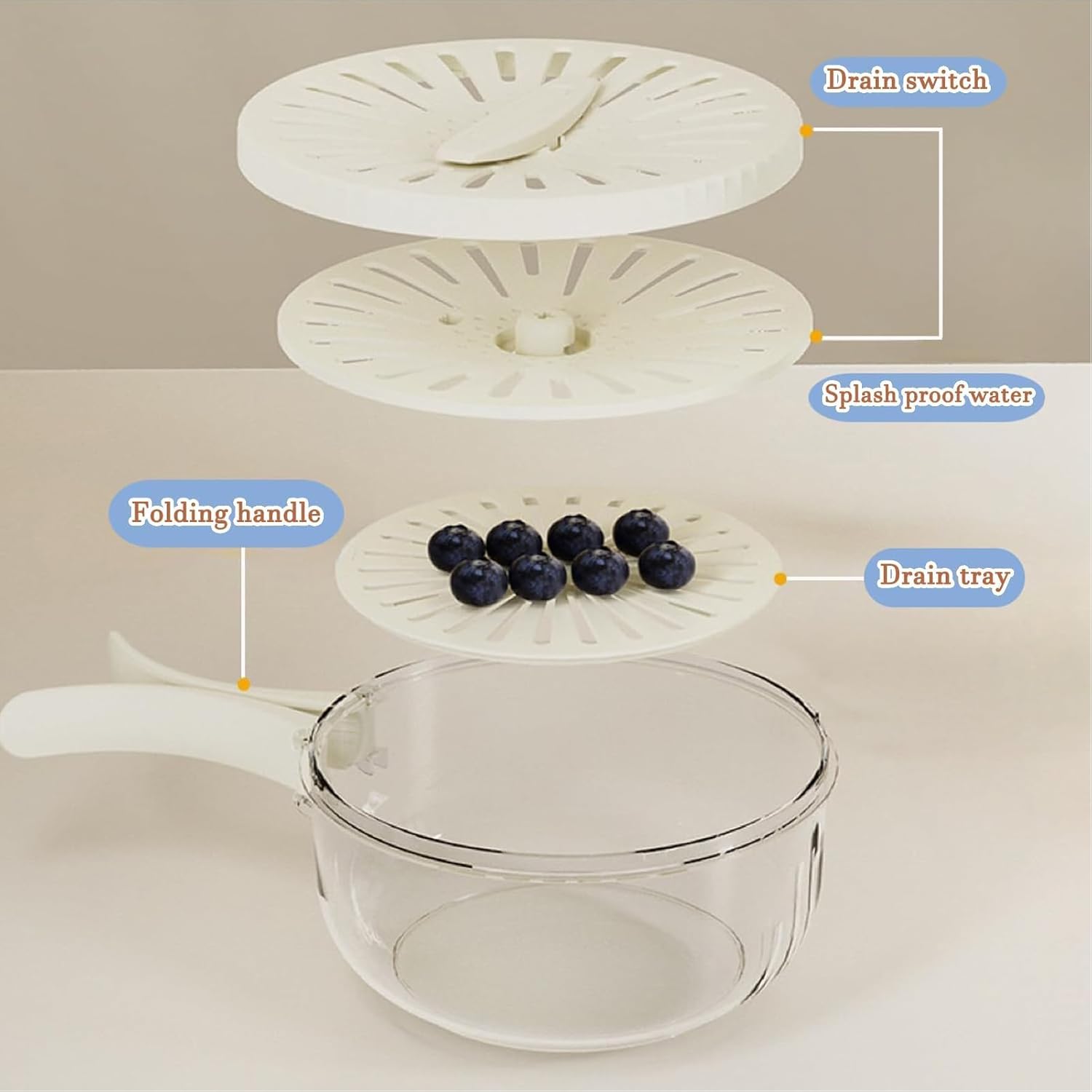 - Fruit Vegetable Draining Bowl, Kitchen Strainer with Foldable Handle, Lid, Drain Tray, Rotating Fruit and Vegetable Washing Colander for Salad Mixing, Fruit Washing (White)