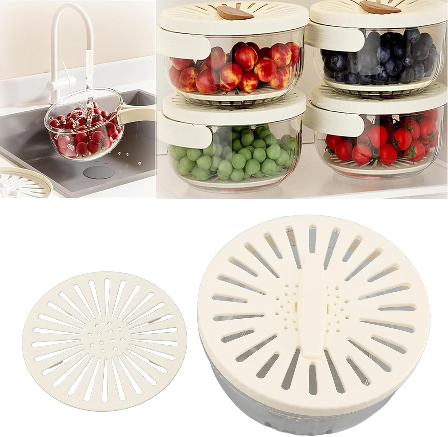 - QUICK DRAINING: The hollow mesh design of the food storage container lid with easy open and close knob ensures efficient washing and draining of fruits and vegetables. In addition, the bottom drain tray prevents fruits from soaking in water.