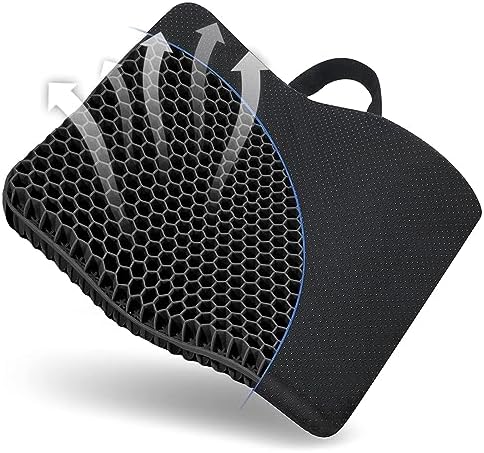 Gel Seat Cushion -for Long Sitting, Double Layer Breathable Honeycomb Chair Cushion with Non-Slip Cover for Help Relieve Pain, for Office Chair, Cars, Long Trips,Durable,Portable