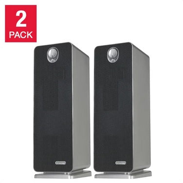The 4-in-1 True HEPA Air Purifier is perfect for allergy sufferers. With a True HEPA filter, it captures 99.97% of dust and allergens as small as 0.3 microns in size. According to the American Academy of Pediatric Allergy and Immunology, doctors recommend HEPA air filtration to reduce exposure to indoor asthma triggers. More than just a filter, the UV-C light helps reduce germs, while the charcoal filter captures odors. Standing 55.9 cm (22 in.) tall, it is lightweight and ideal to use in both small to medium rooms. The easy to use controls include UV-C control and 3 speeds, including a low speed that runs ultra-quiet. The simple, stylish design looks great in any home environment. The 2 pack allows you have units in multiple rooms.