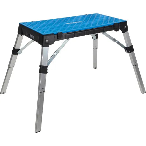 Assembly Required No Power Yes Type Portable Workbench Color Blue Style Workbench, Scaffold, Dolly & Creeper Edge Type Square Leg Style Square Tubular Leg Mobile or Stationary Stationary Material Steel Construction Type Assembled Package Quantity 1 Manufacturers Part Number 493680 Leg Type Adjustable Top Material Plastic Brand Global Industrial
