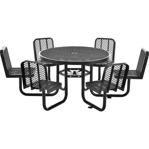 Global Industrial™ 46" Round Picnic Table w/ 6 Seats, Expanded Metal, Black