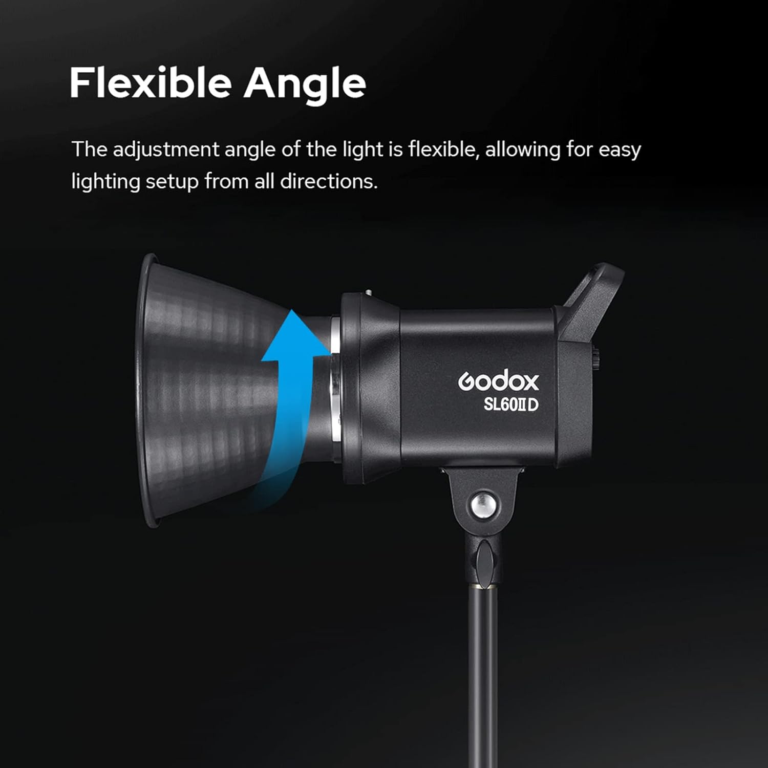 - Compact Unit with Stronger Output: GODOX SL60IID is more compact and flexible with stronger output for use in smaller studios. And the max. output of the photography light at 1M with standard reflector is 18600Lux, producing impressive brightness. With 0 to 100% dimming, you can adjust the brightness precisely as needed