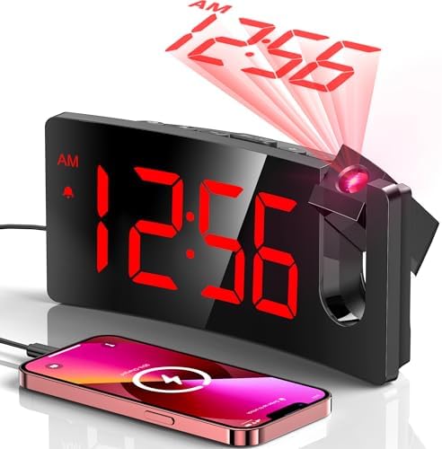 - INTEGRATED PROJECTOR WITH A SHARP AND CLEAR IMAGE -- The arm of this digital clock swivels 180 degrees for optimum positioning, getting the fine and smooth time figure image on the wall or ceiling at the appropriate distance of 1.64-11.4ft(0.5-3m). The edges of the projected numerals are surprisingly sharp and clear without having to fiddle with a focus adjustment offered on some other projection clocks.