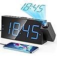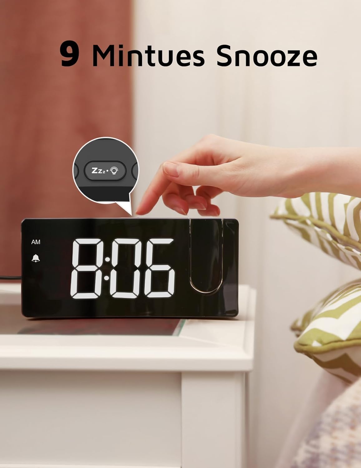 GOLOZA Projection Alarm Clock, Digital Clock with Modern Curved Design 180° Rotatable Projector, 3-Level Brightness Dimmer, Clear Blue LED Display, Progressive Volume, 9mins Snooze,12/24H, for Bedroom