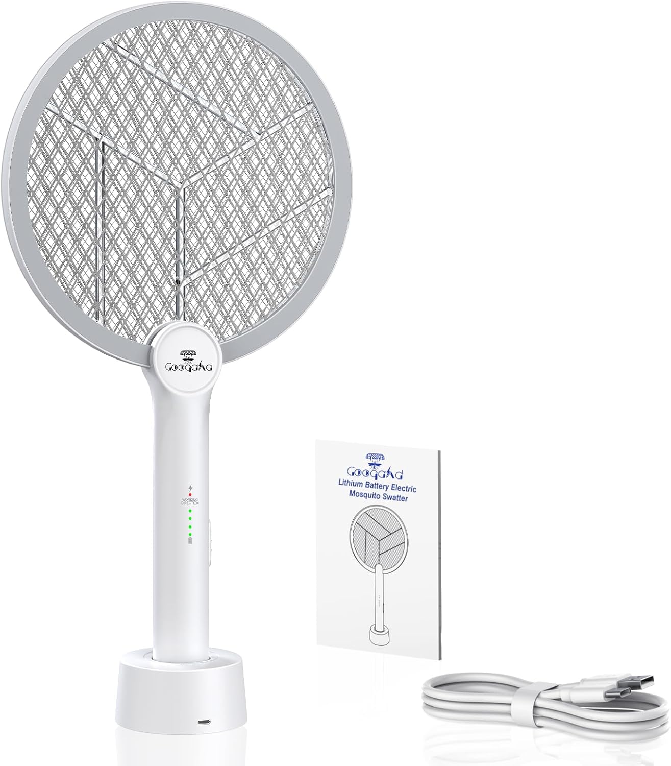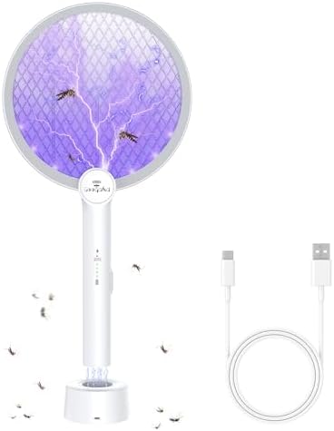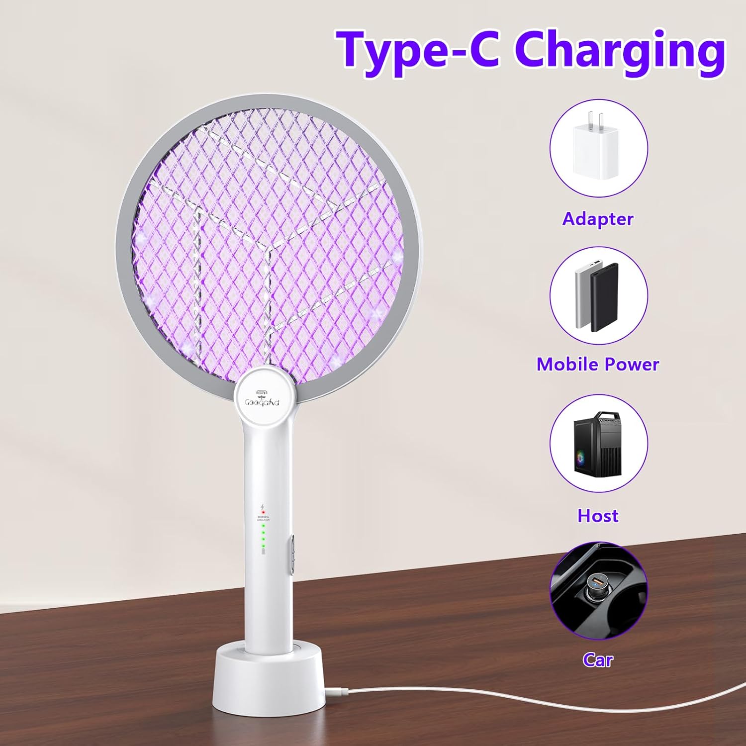 Gooqand Bug Zapper Racket, 2 in 1 Electric Fly Swatter, 4000V Fly Zapper with USB Rechargeable, Fly Swatter with 3 Layer Safety Mesh, Indoor Outdoor Fly Racket for Bedroom,Kitchen,Camping(2 Pack)