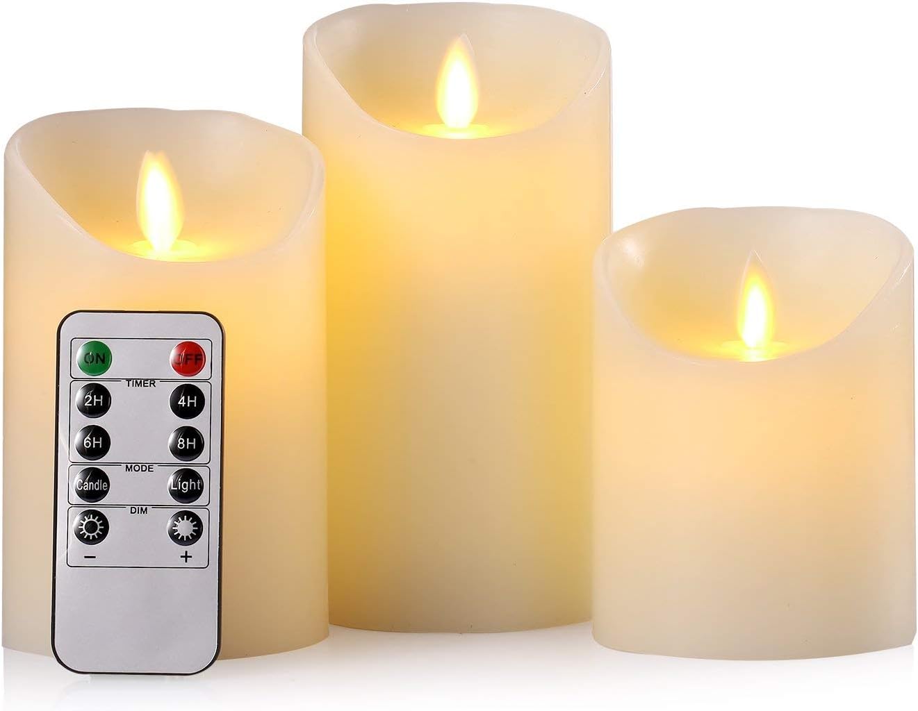 - 10-key remote timer, once the timer is set, the candle comes on at the same time each day and stays on for either 2 hours/4 hours/6 hours/8 hours.